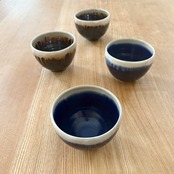 深い瑠璃色にカフェオレのスチームミルクやお抹茶のグリーンが良く似合います。これからの季節には具沢山スープや炊き込みご飯などにもどうぞ…