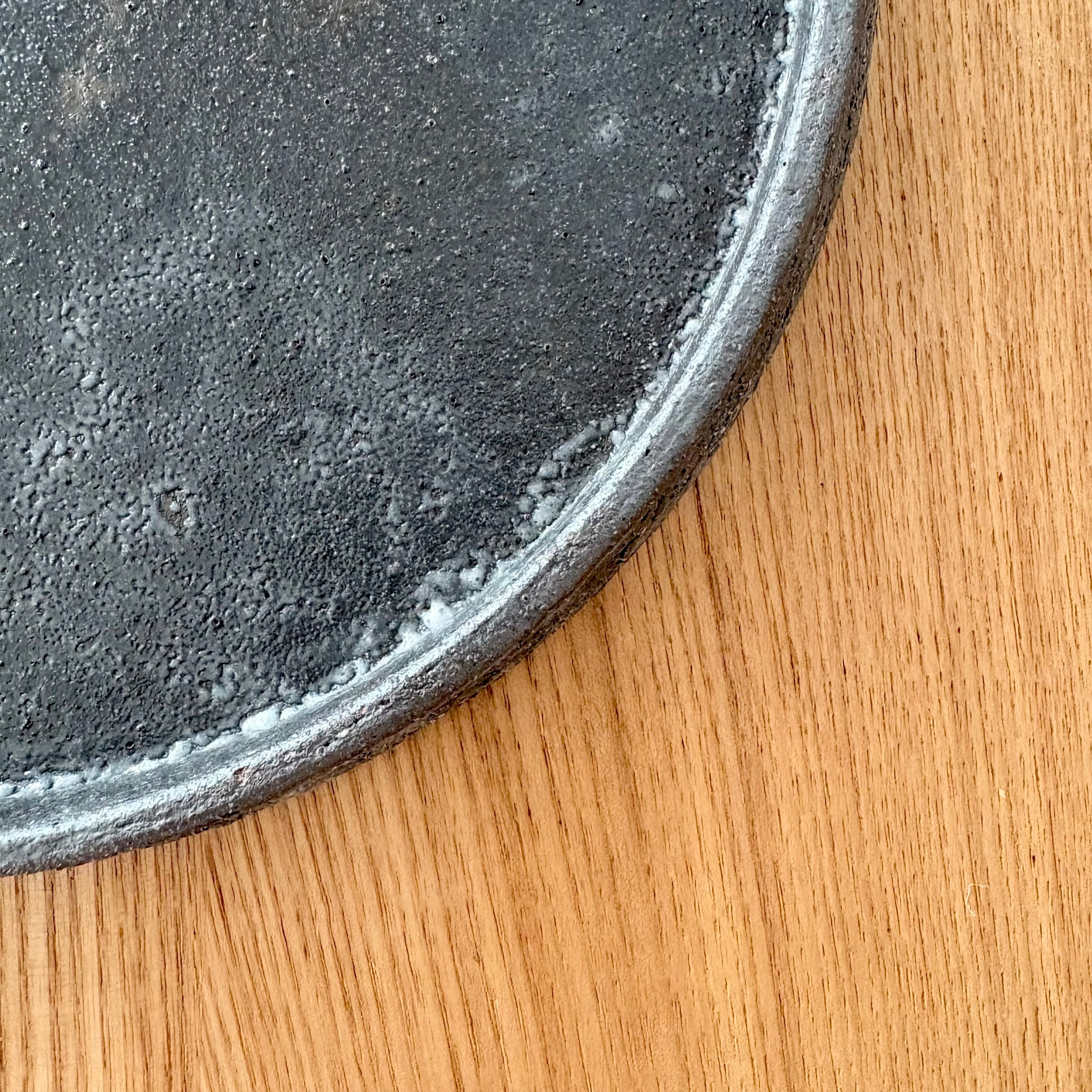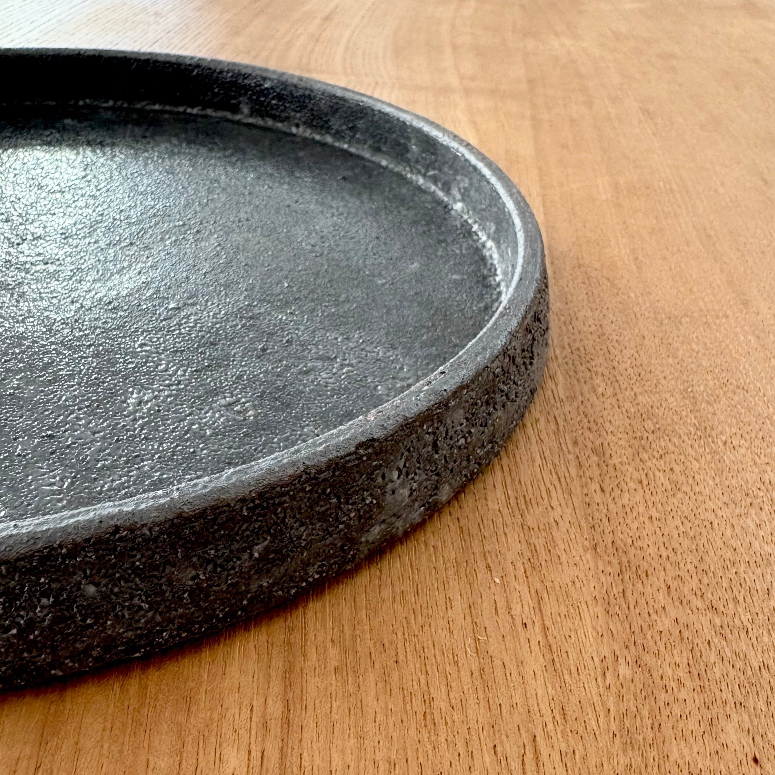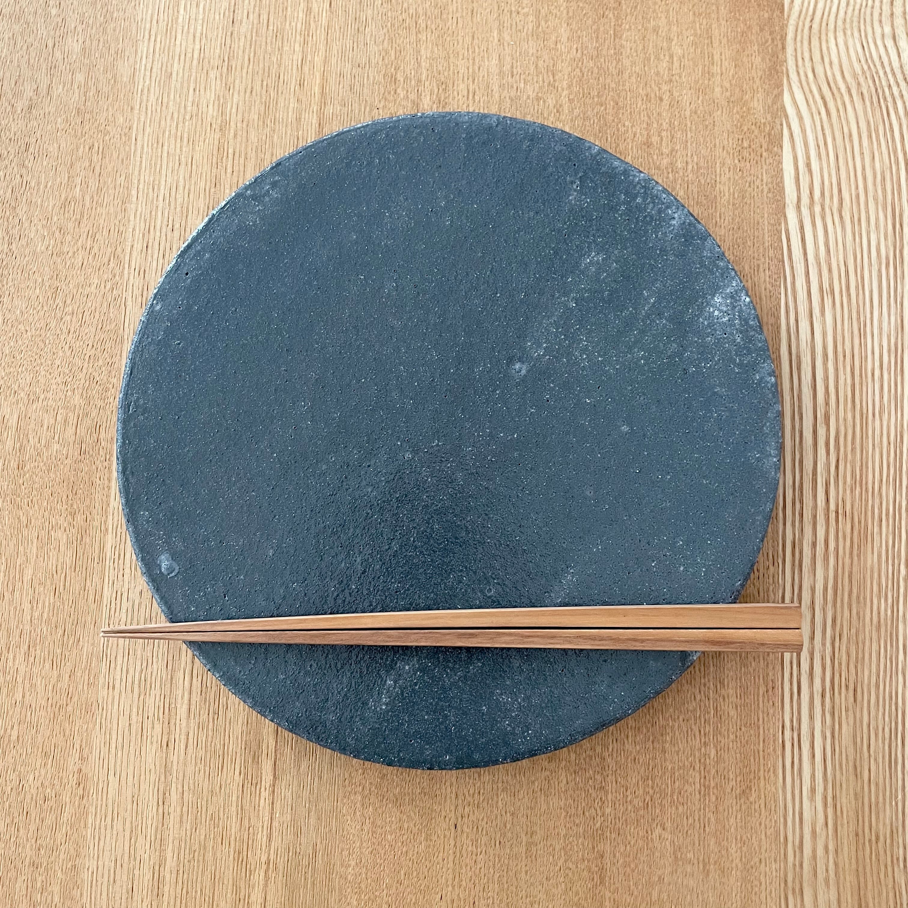 黒と言っても、青みががった色味で食材をカッコよく決めてくれます。表面は凹凸があったり、釉薬のムラで白っぽくなっている箇所があったりで『これぞ土ものだなぁ』と実感できるお皿です。