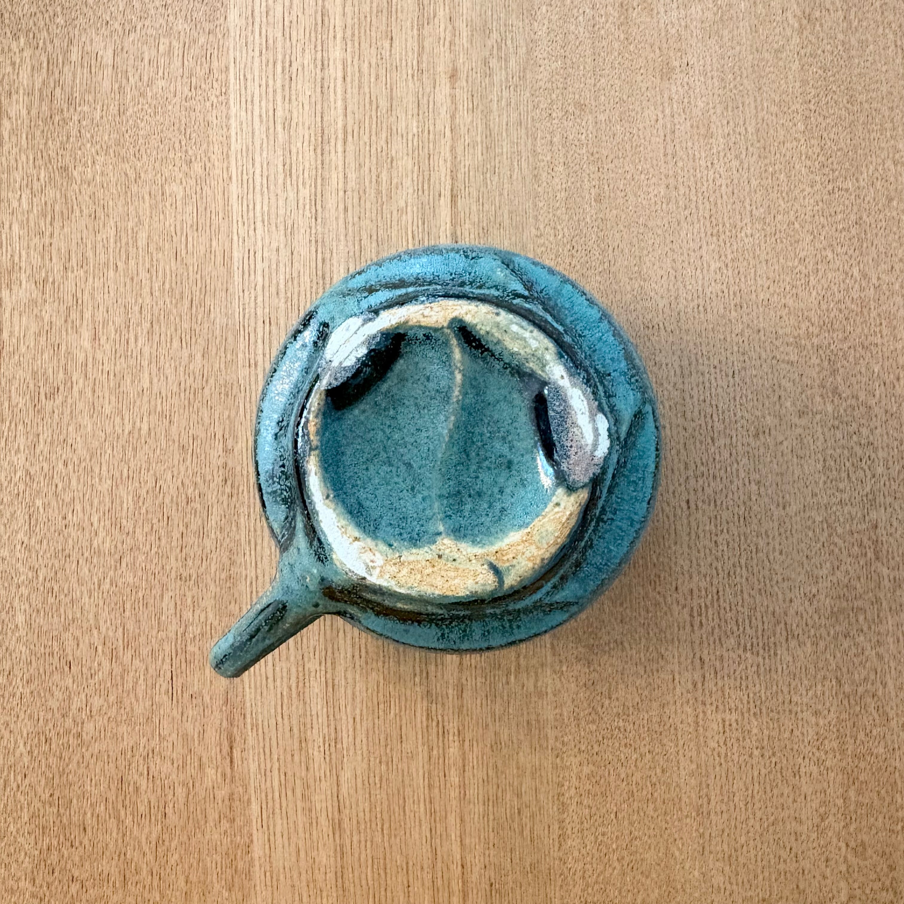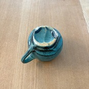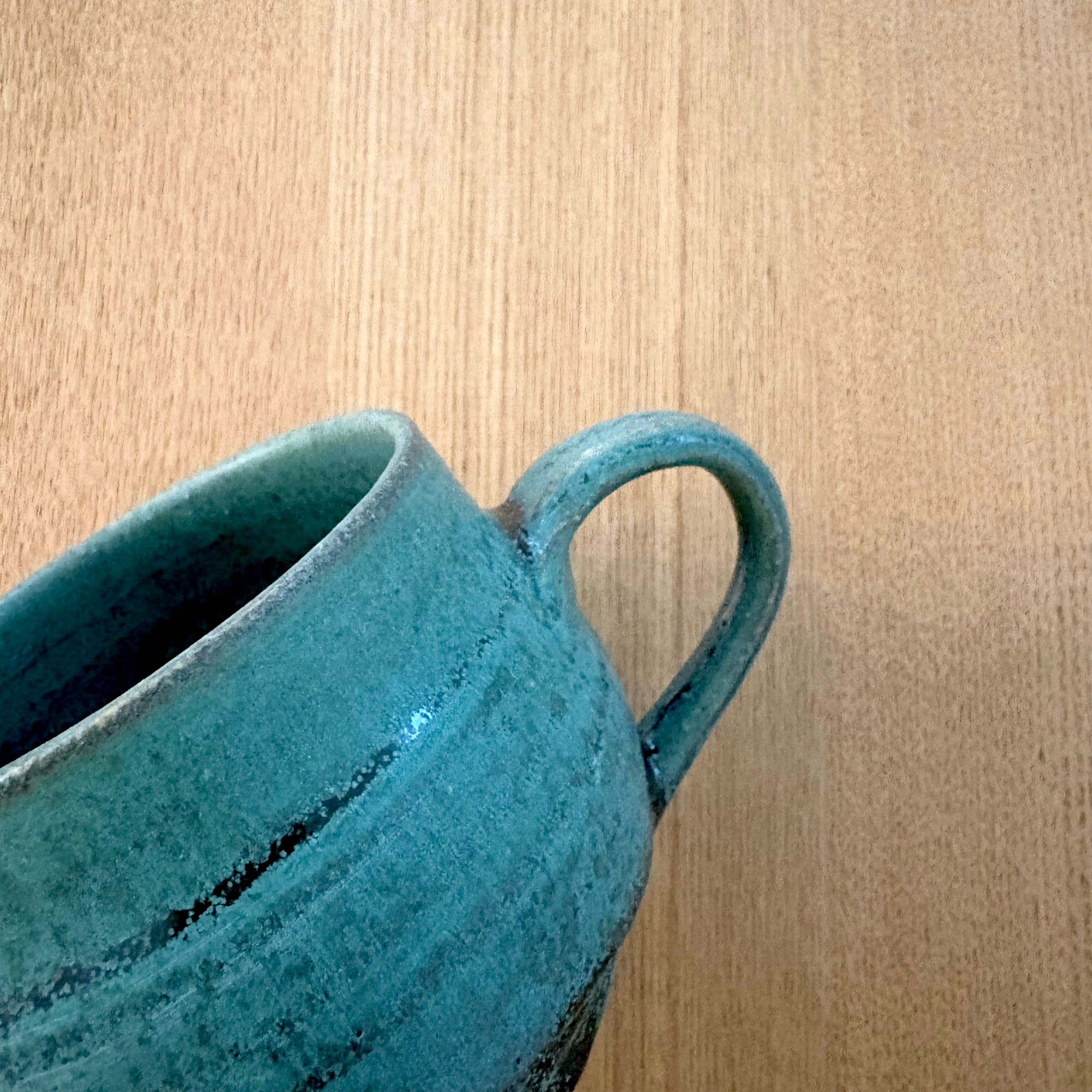 デニムのようにビンテージ感のある色が独特な艶消織部釉薬です。