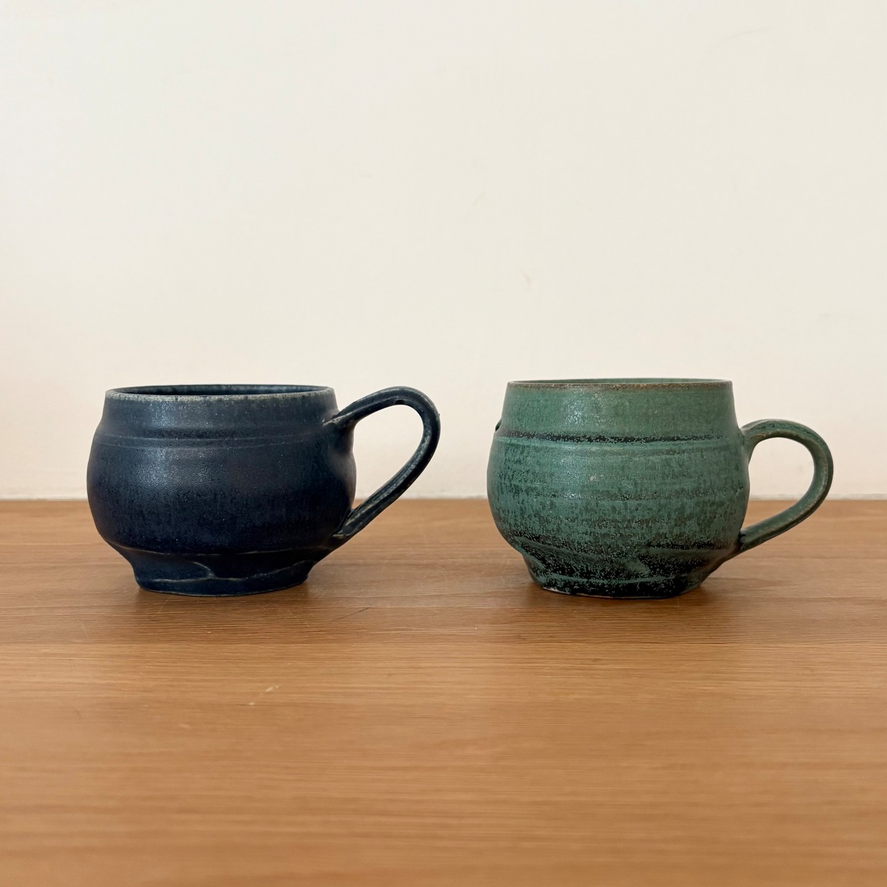 ぽてっとしたボディが愛らしいフォルムの丸マグ。通常タイプとは取手も少し違います。