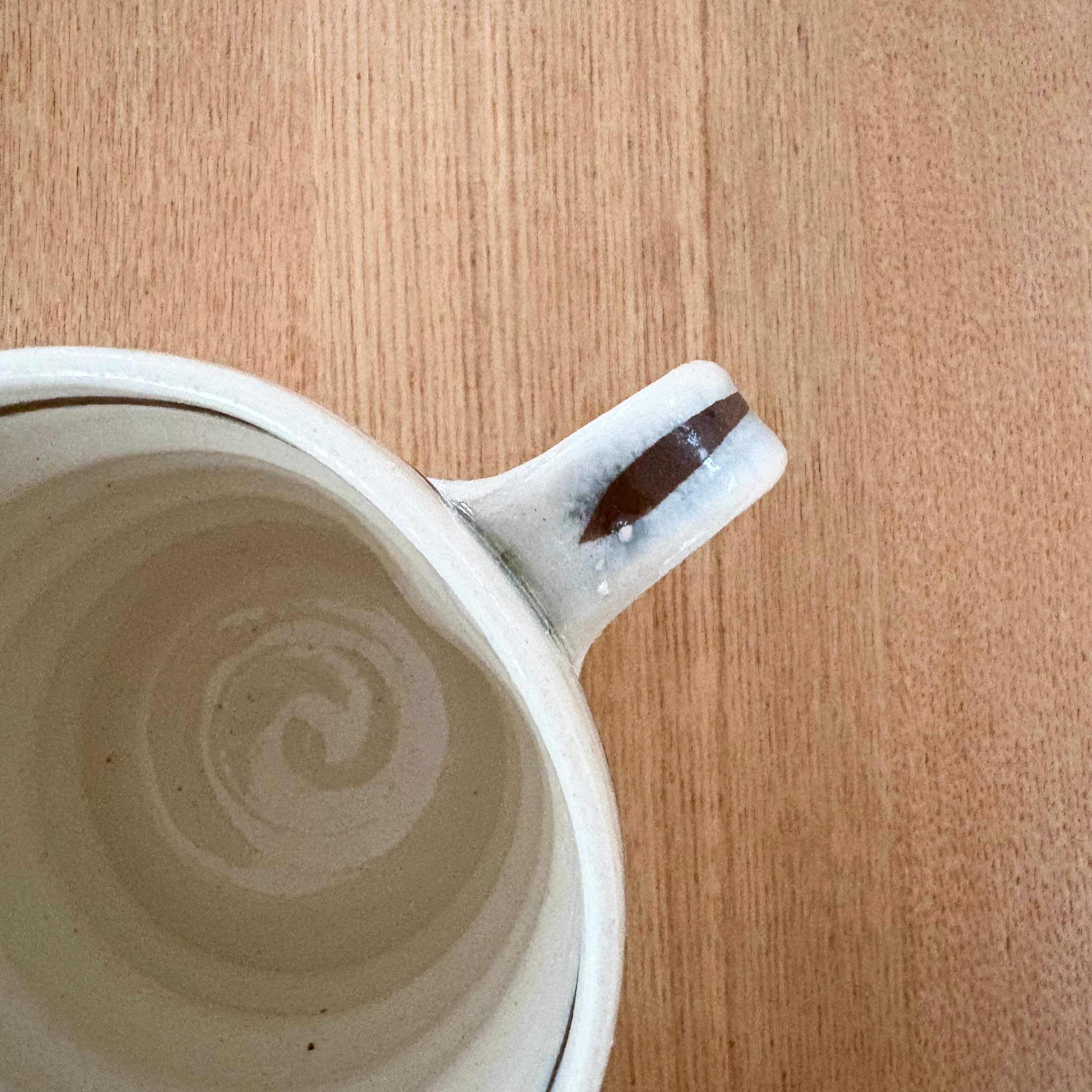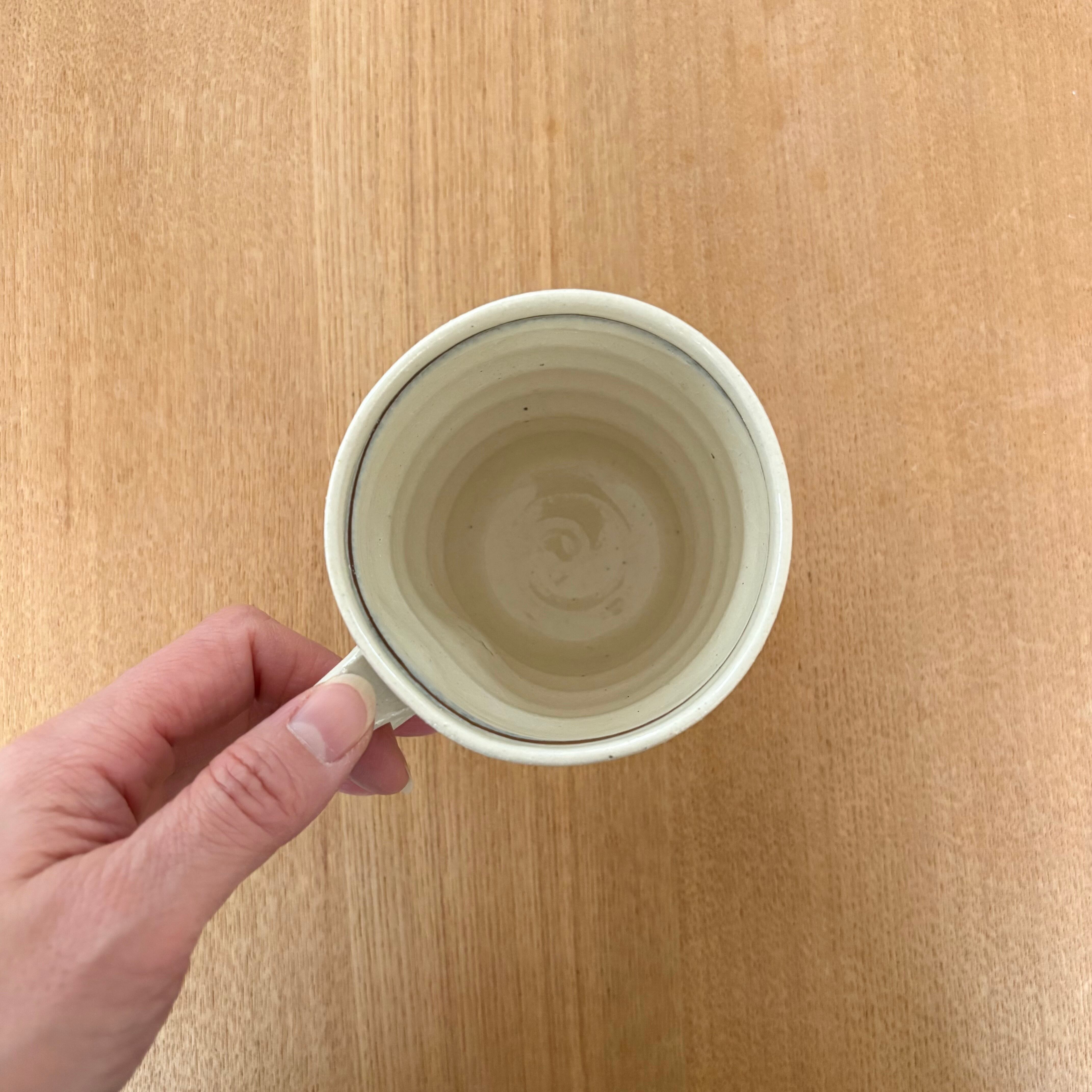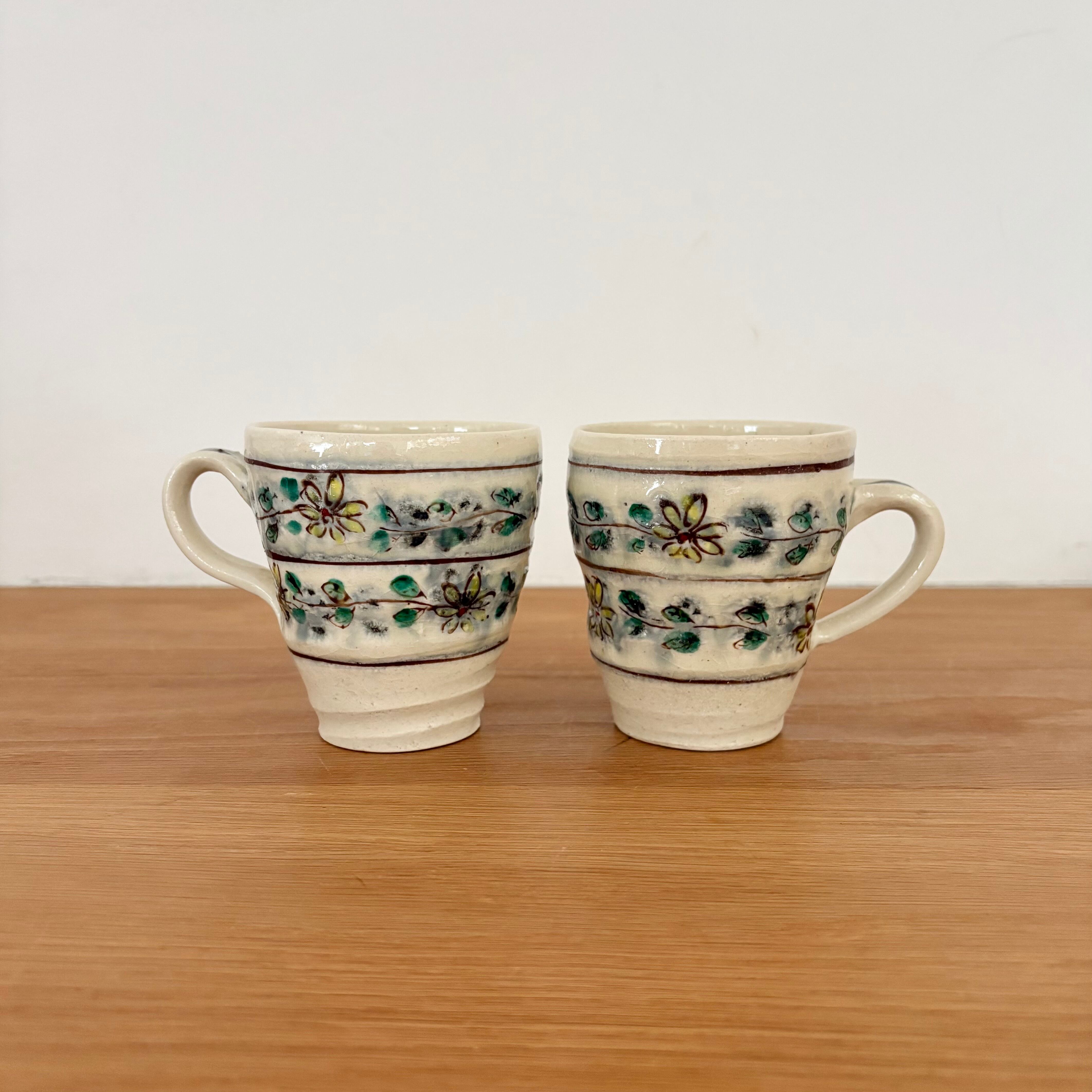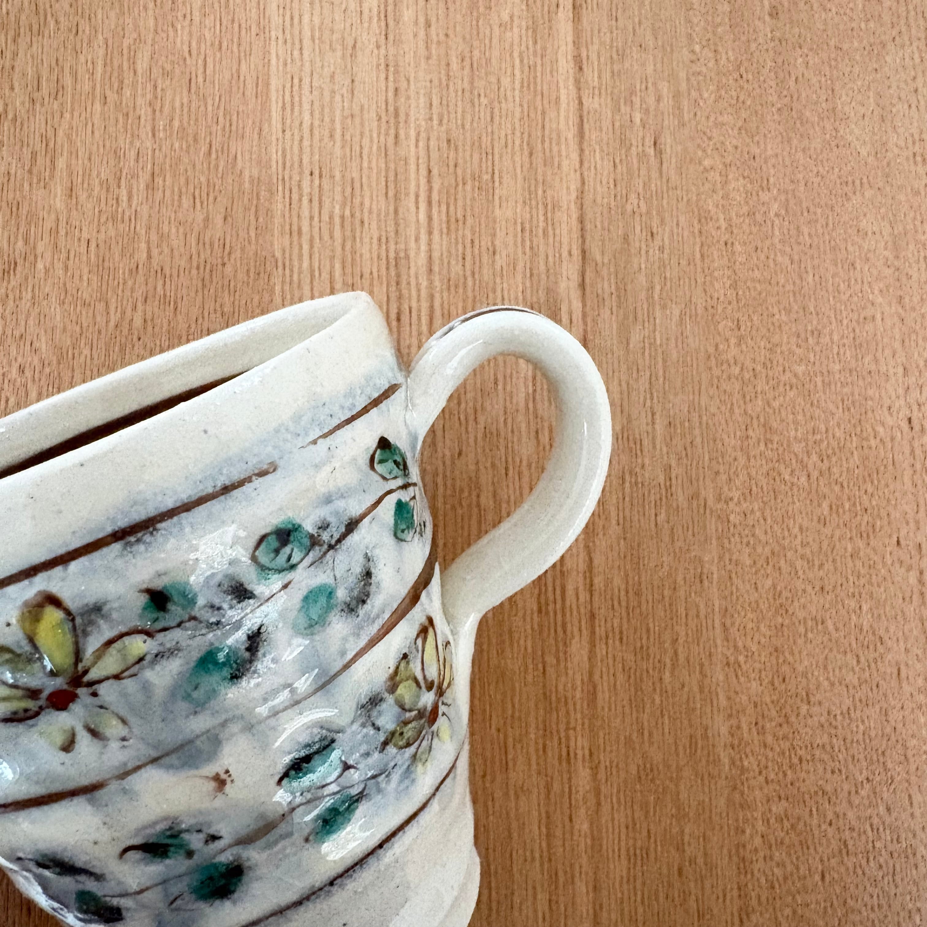 手で描かれた黄色のお花が愛らしくて春らしいマグカップ。なんと言っても180gと軽いのが魅力的です。