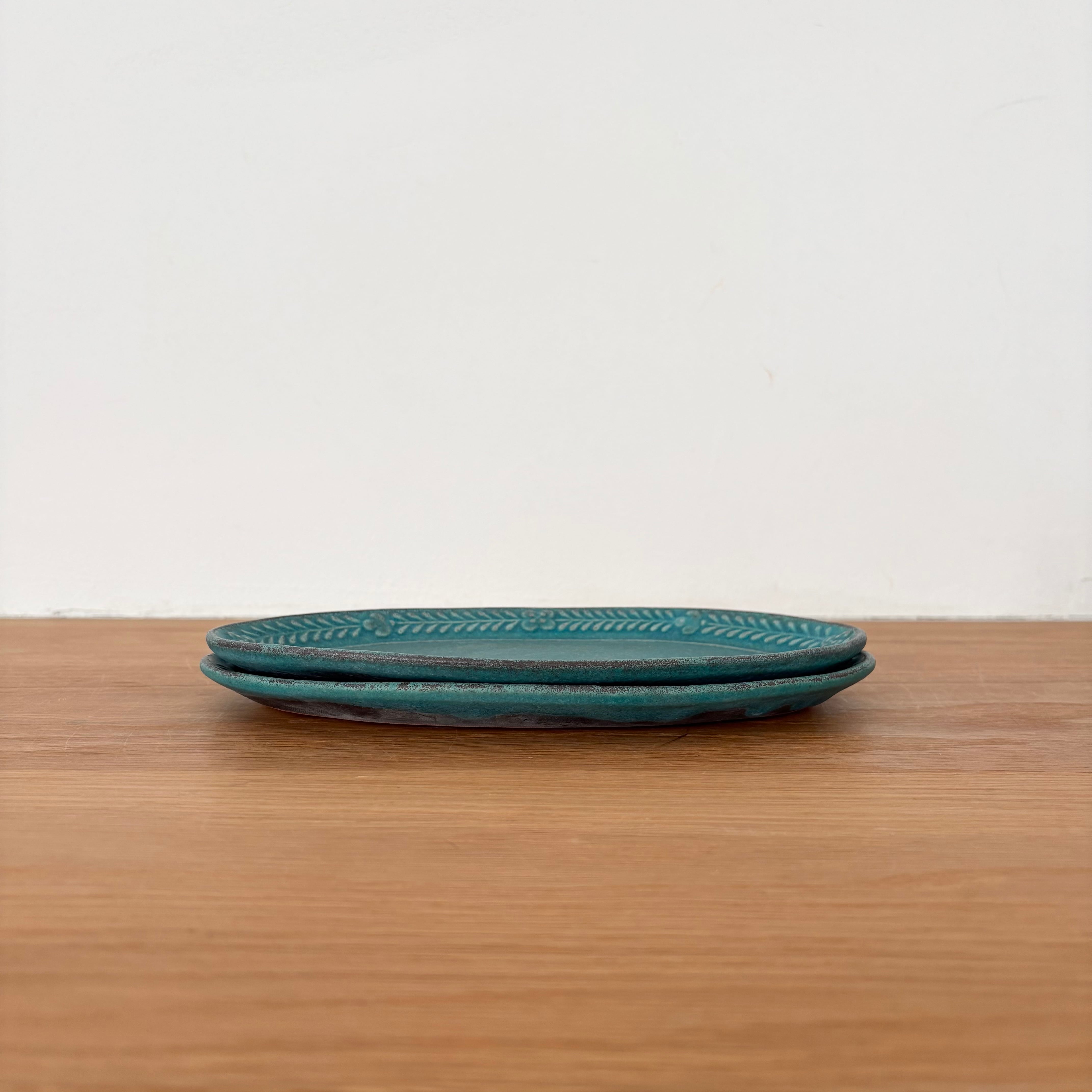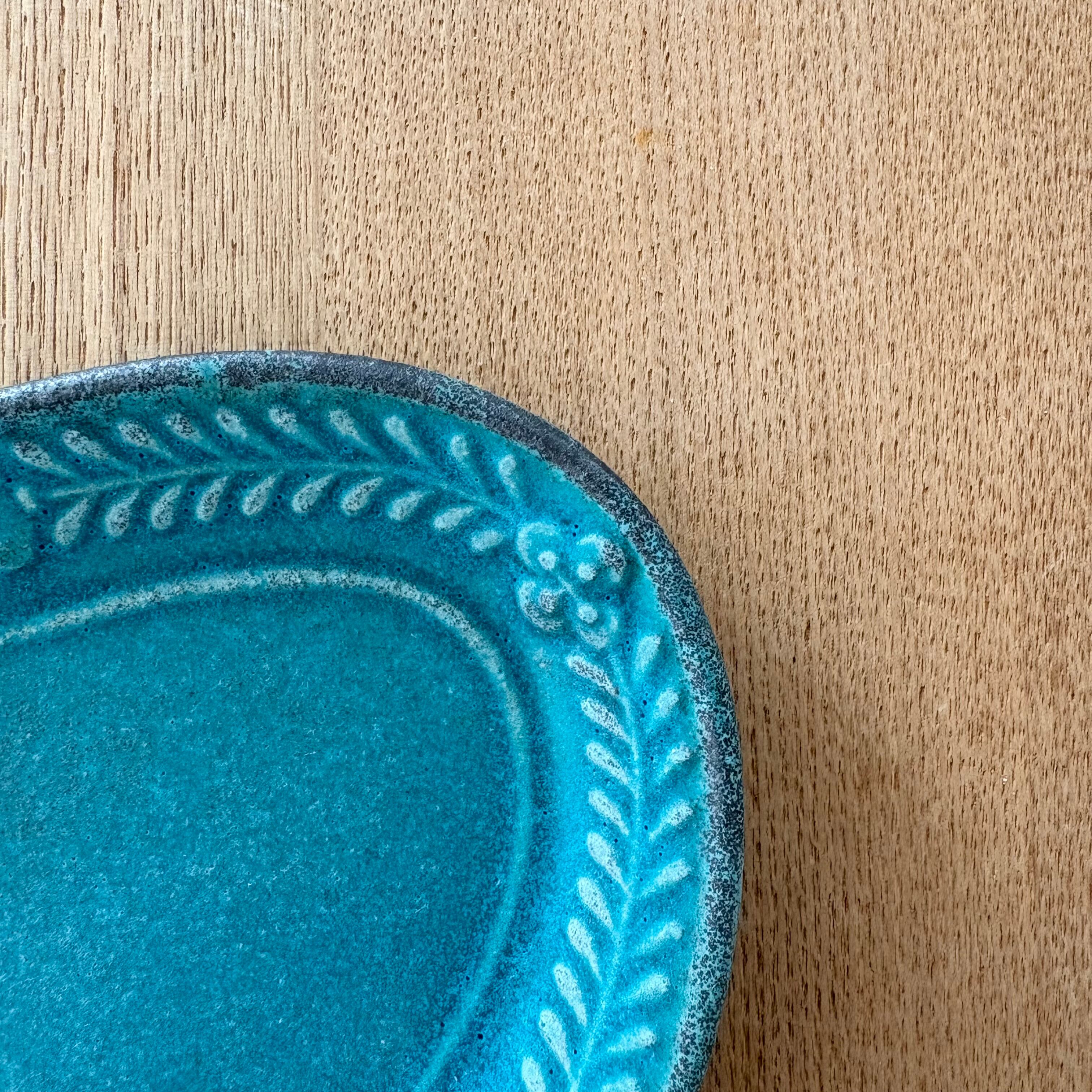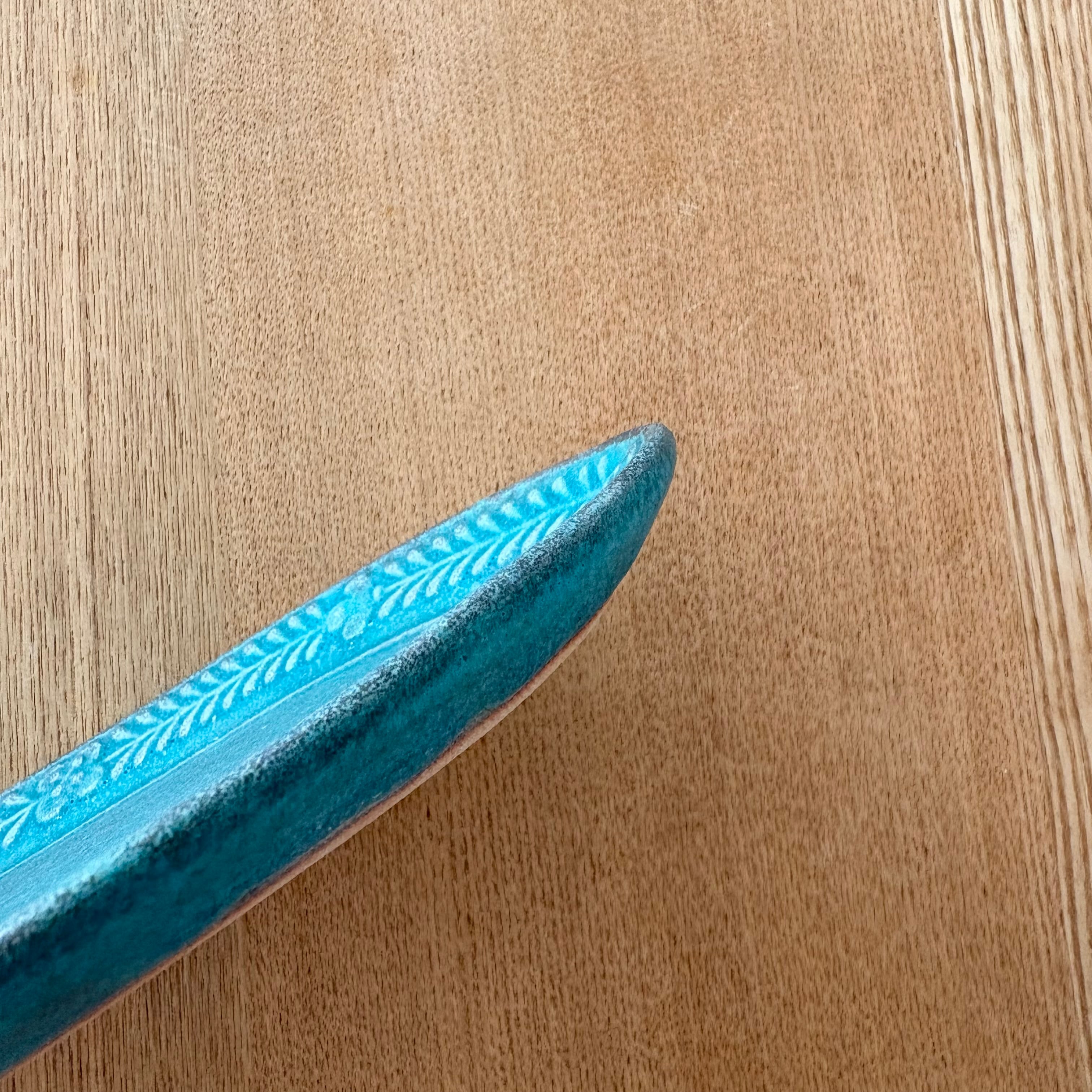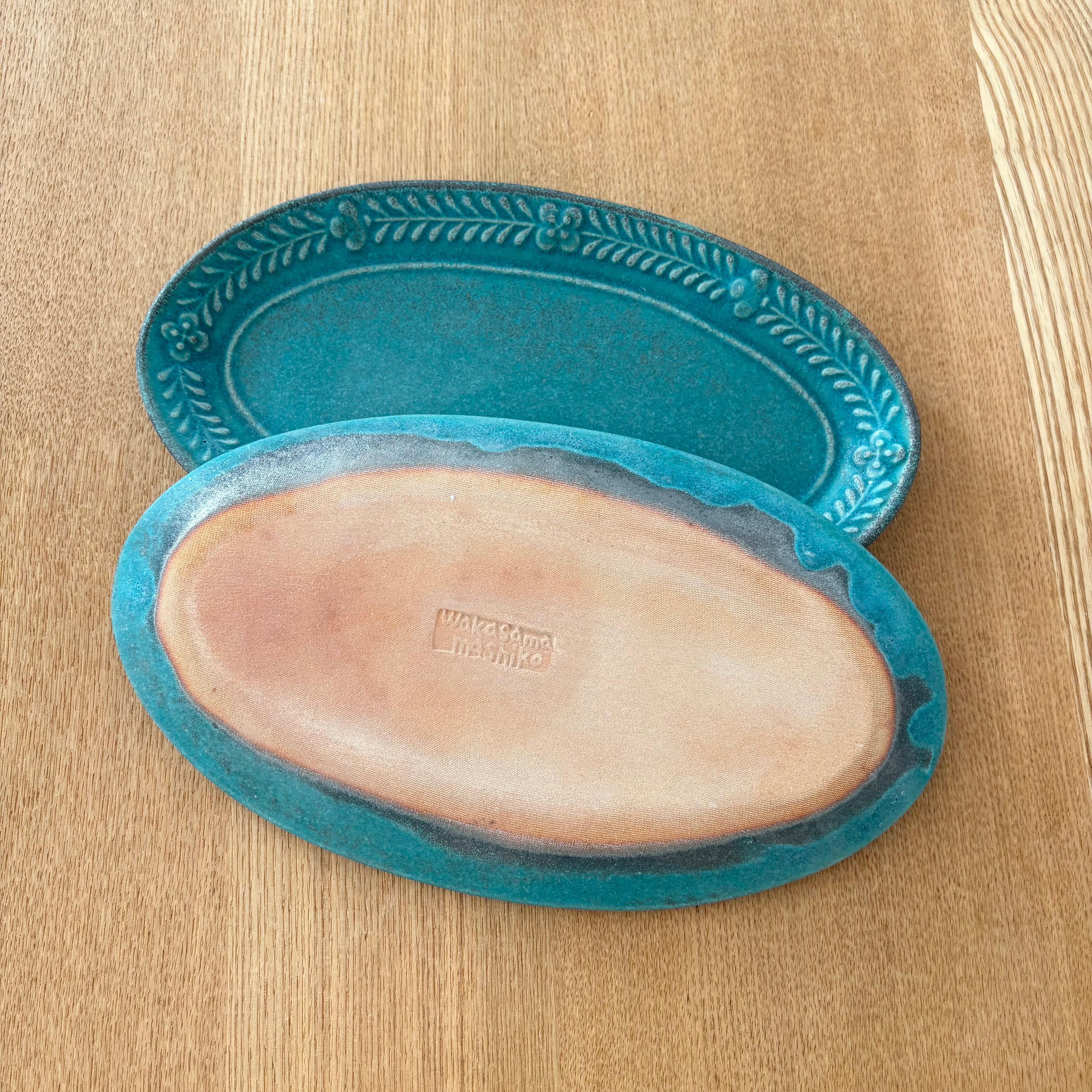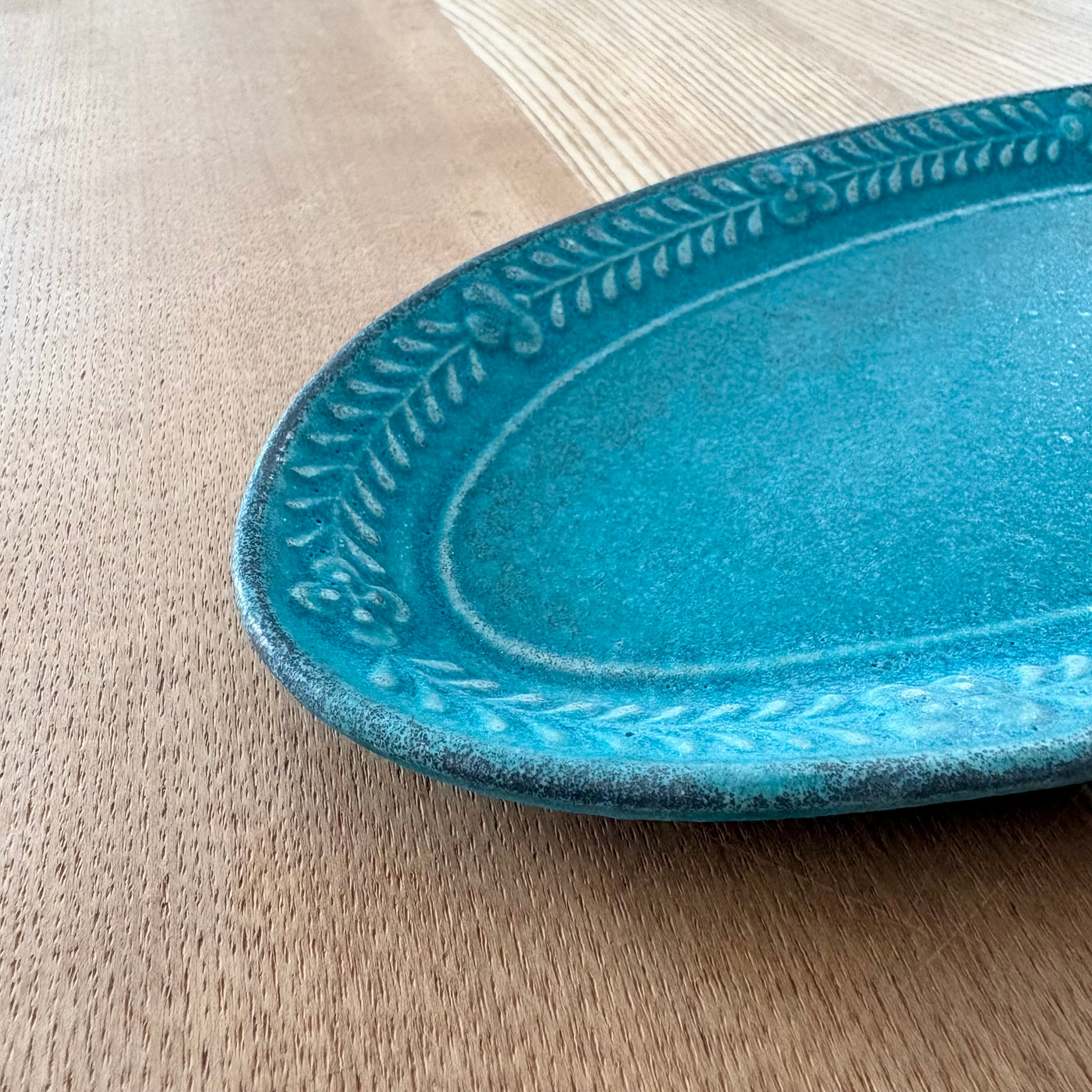 ケーキや取り皿にもちょうど使いやすいサイズの楕円皿。アクセントにもなる人気のシャビーターコイズ、強い色味ながら料理との相性もよく日常食卓をより引き立てせてくれます。