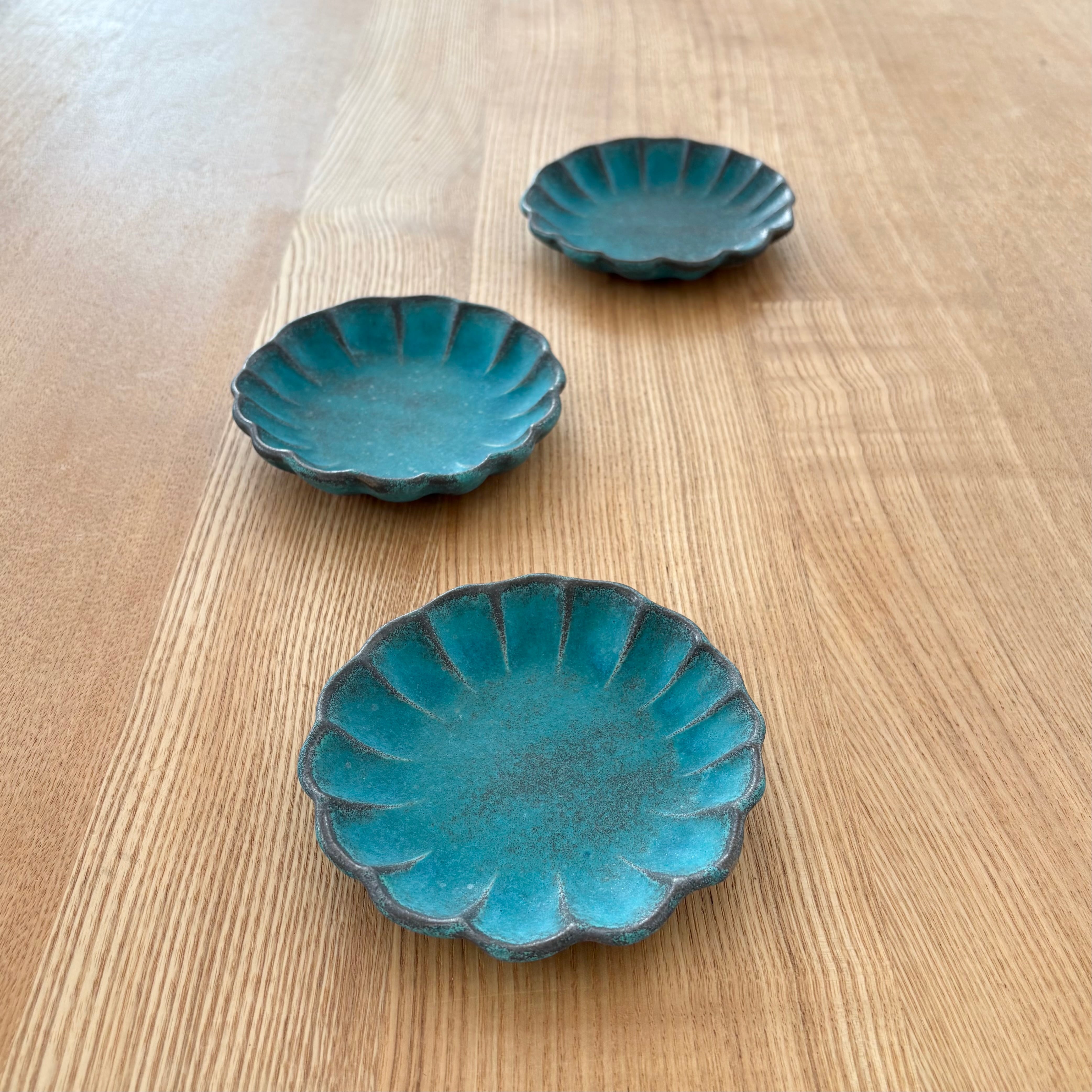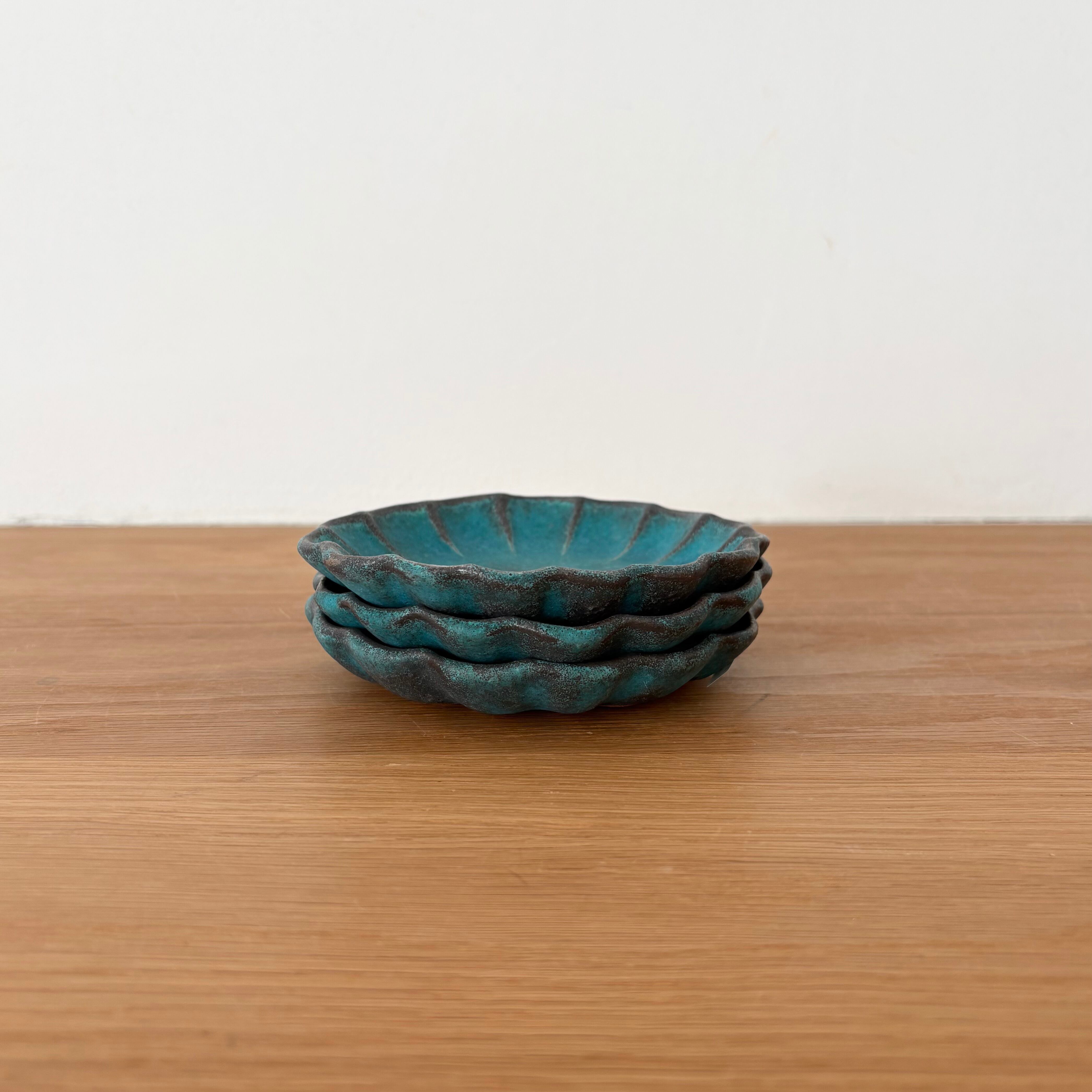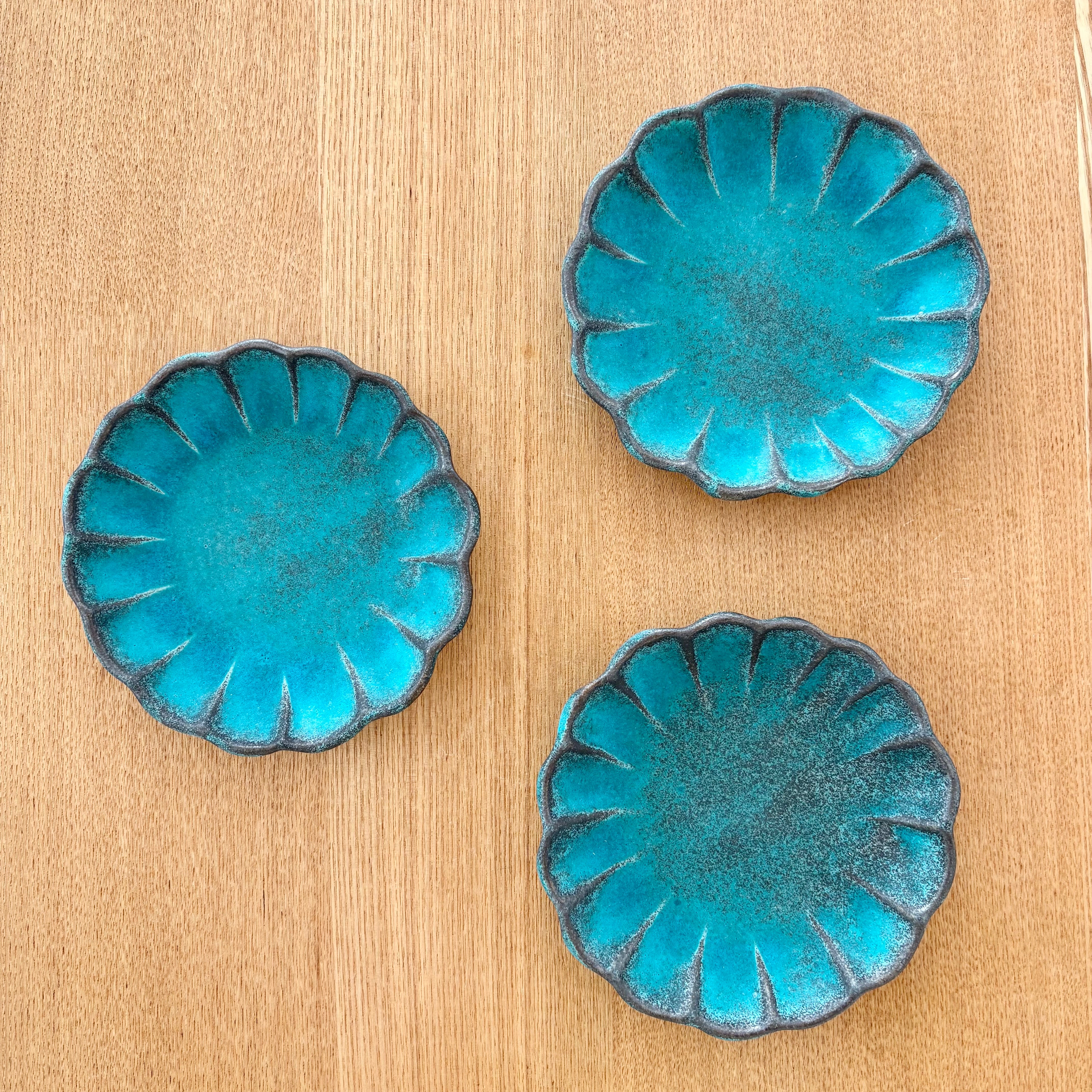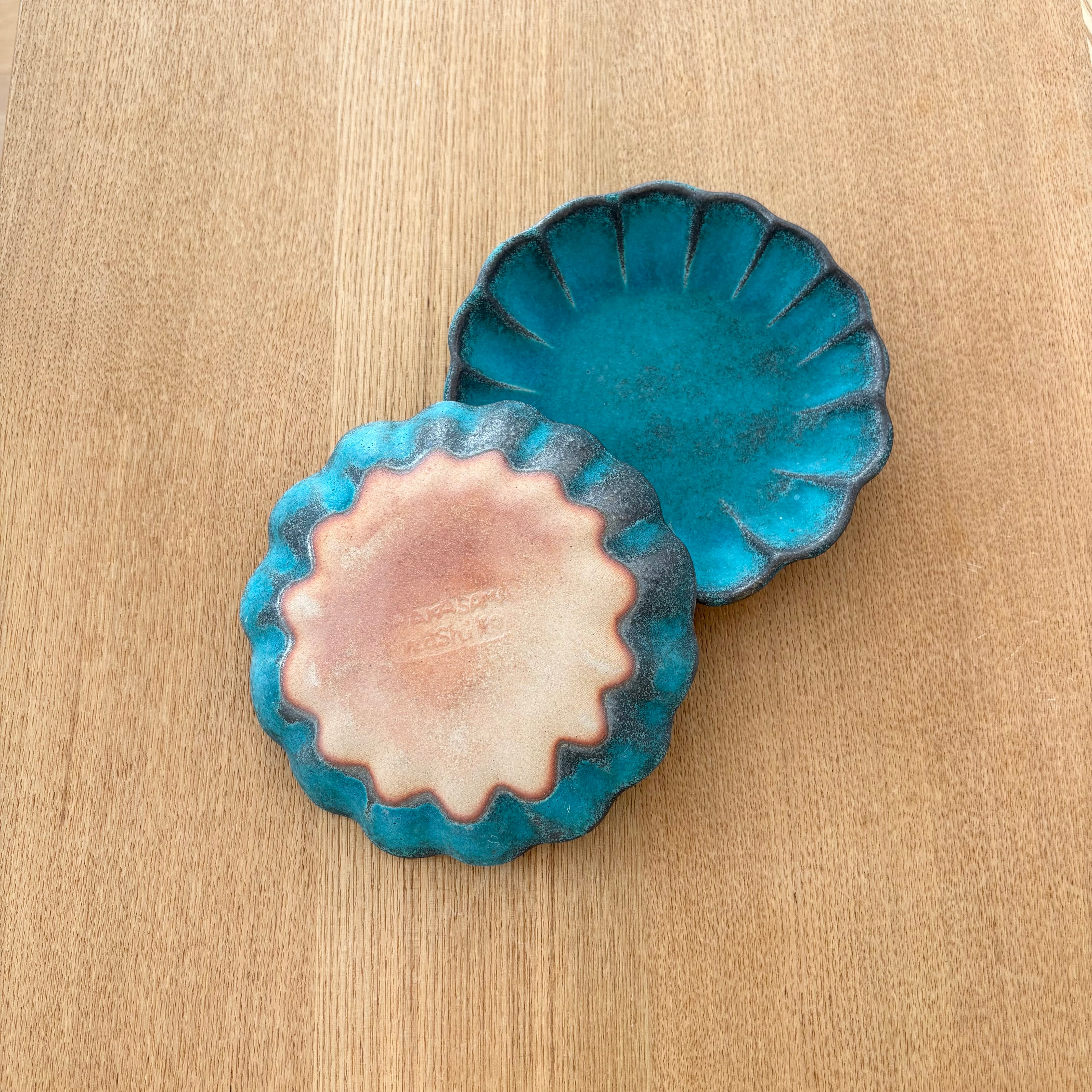 シャビーターコイズ輪花小皿