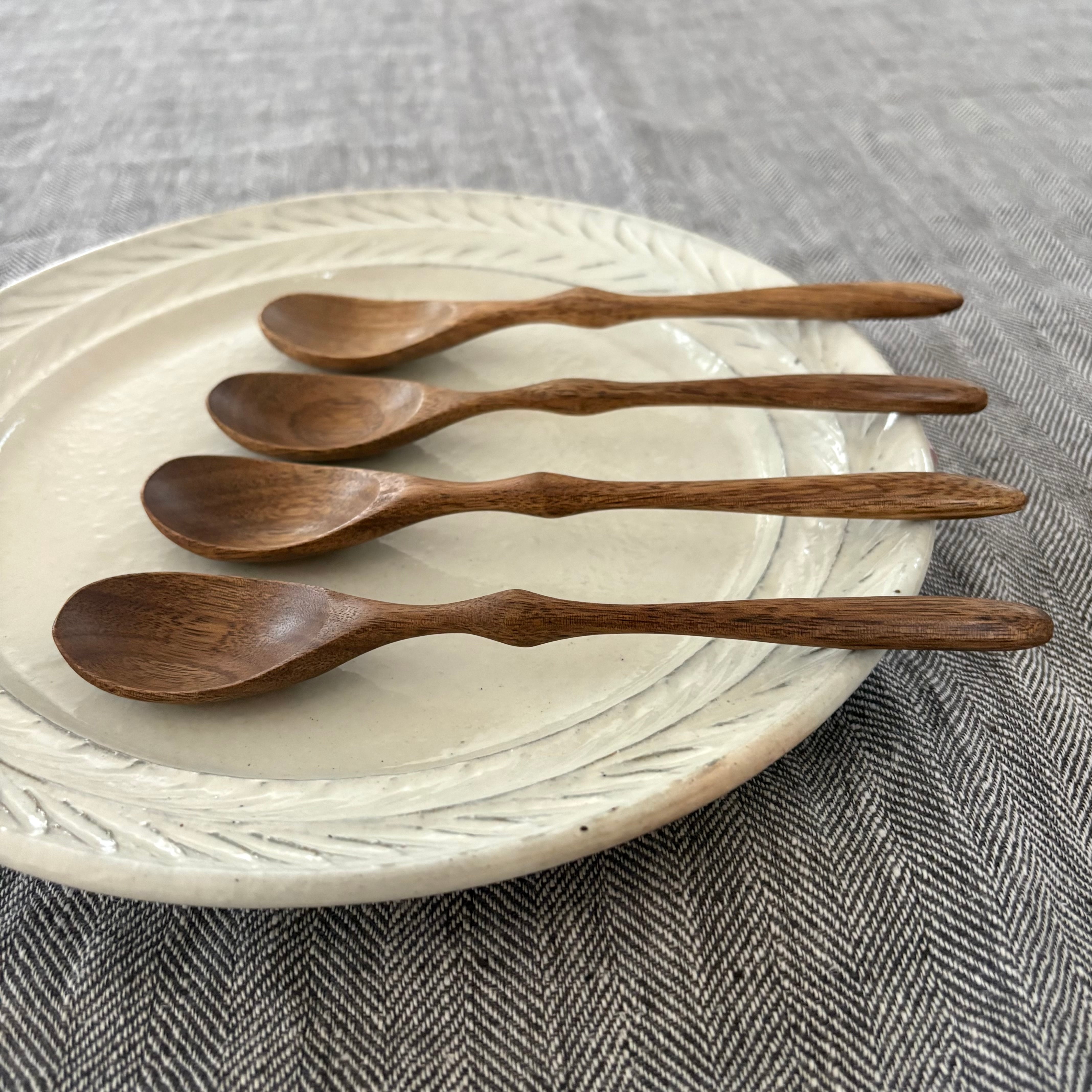 アカシアウッドならではの、木目が持つ自然の美しさと、手に取った時の軽やかな質感が魅力のカトラリーです。冷たいデザートから温かいスープまで食べやすく使い込む程に風合いが増していきます。柄の部分に施されたほんの少しのデザインが、どこか懐かしい雰囲気に仕上げ、愛着のわくカトラリーに仕上げました。