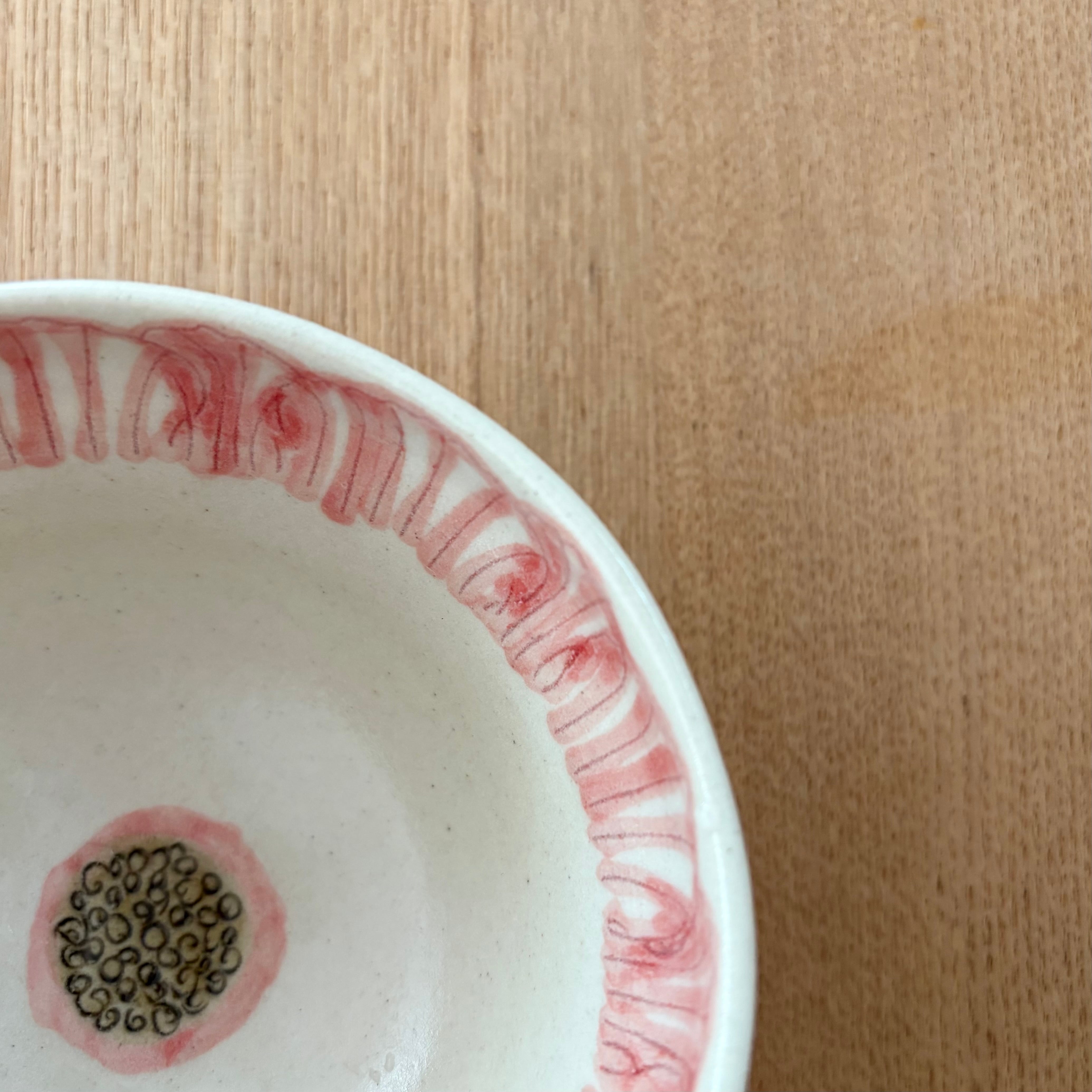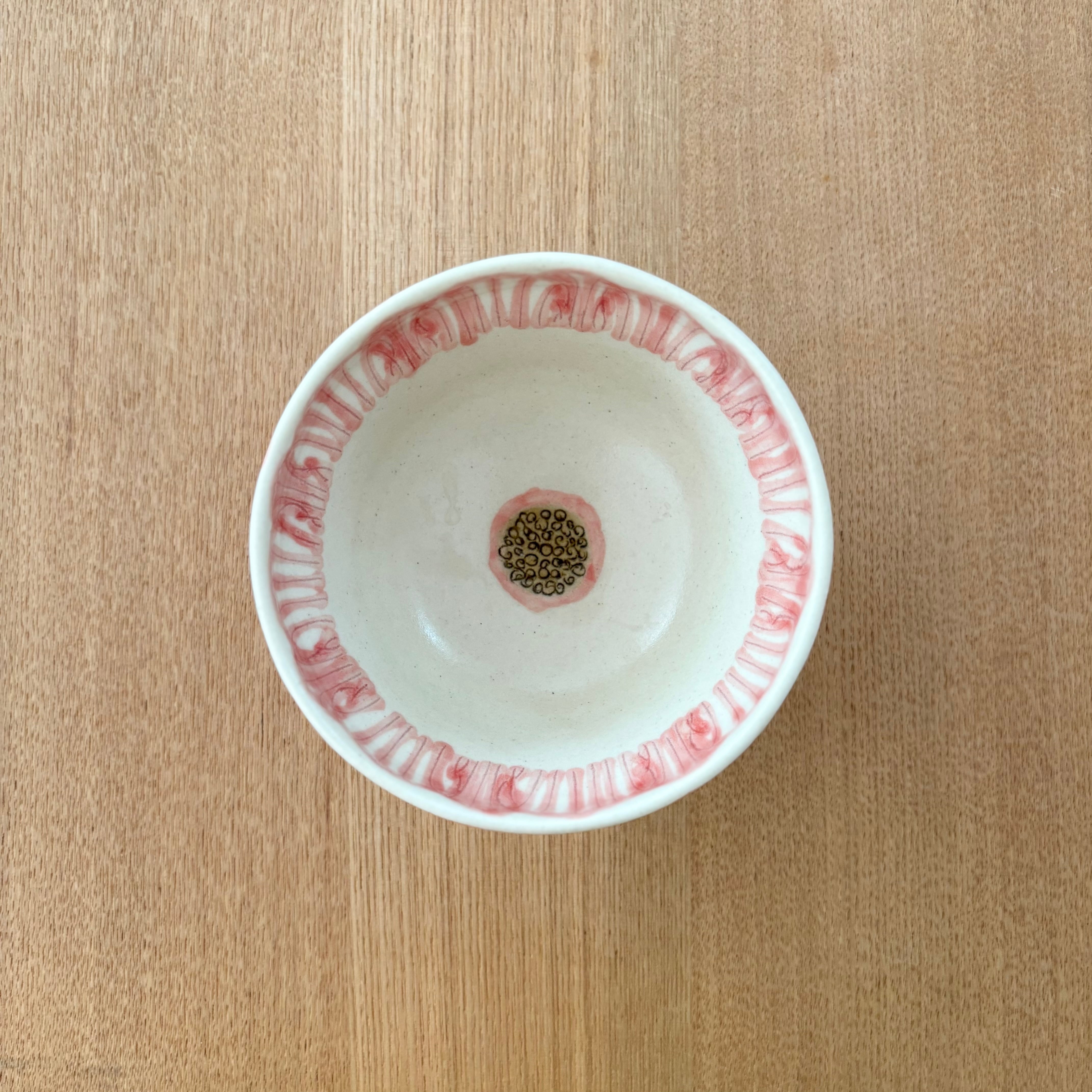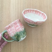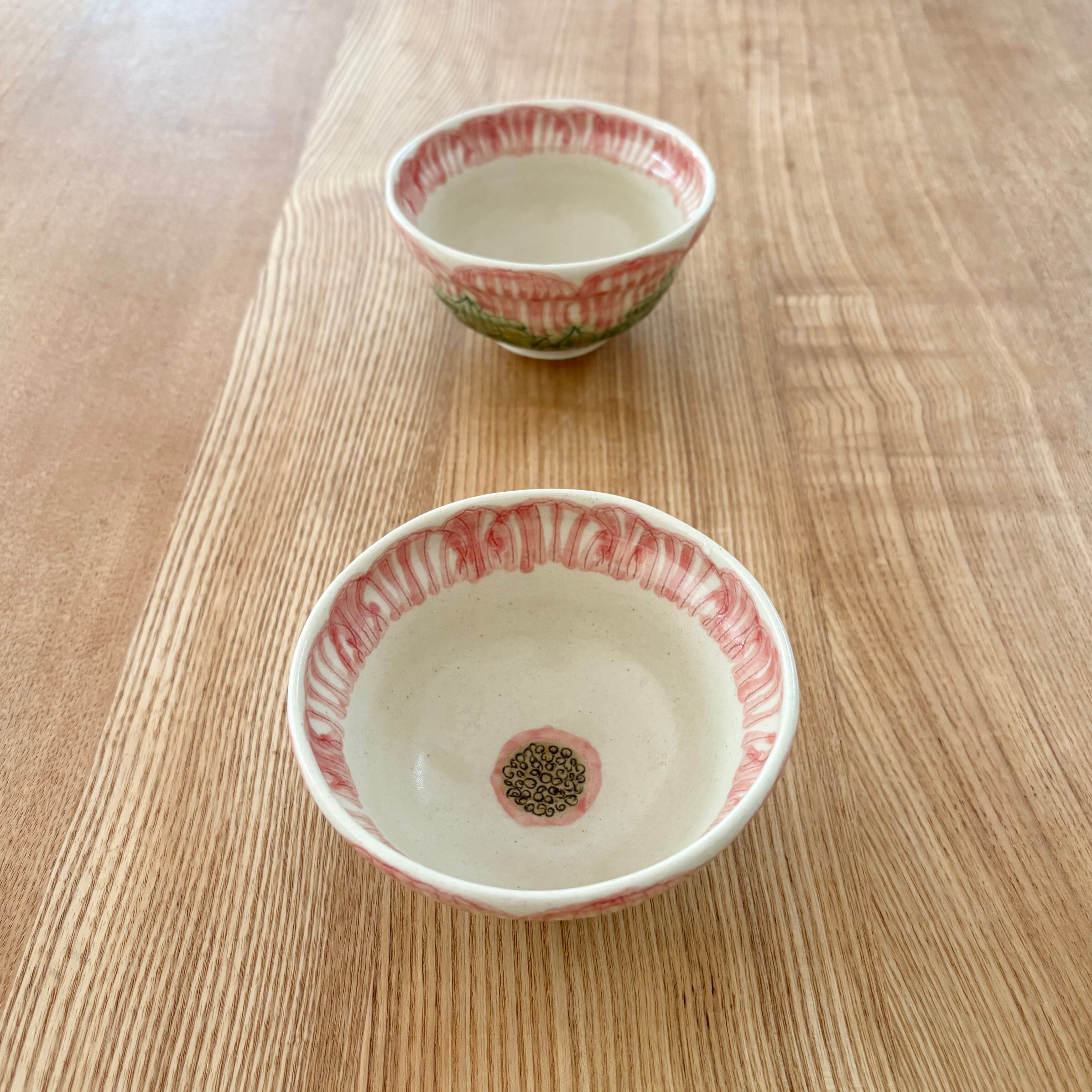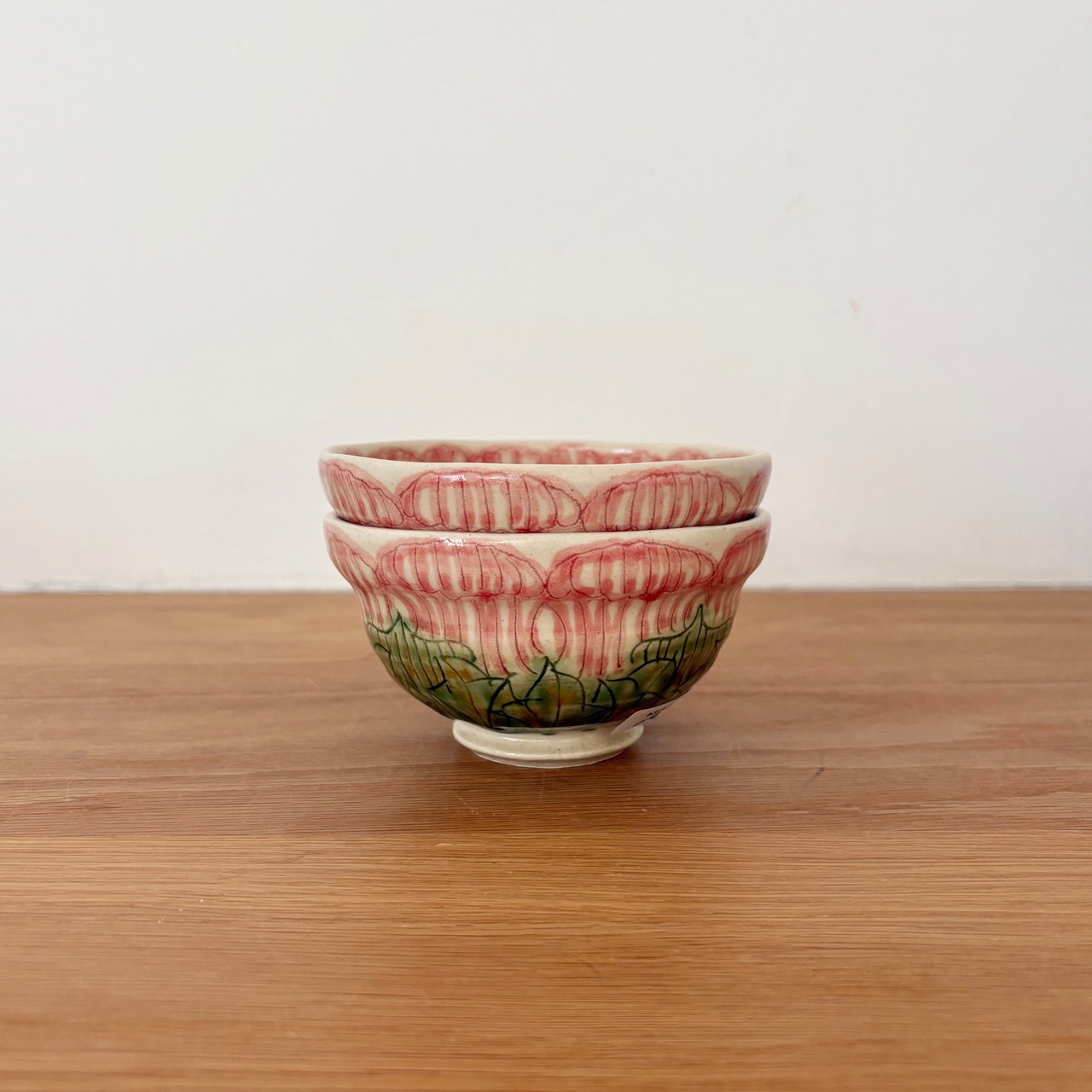 花びらのピンクと葉のグリーンが優しい色味のお茶碗。内側にも絵が描かれてるので食べた後もつい笑みがこぼれます。手に取ると見た目以上に軽く、ご飯の時間が益々楽しい時間になることでしょう。