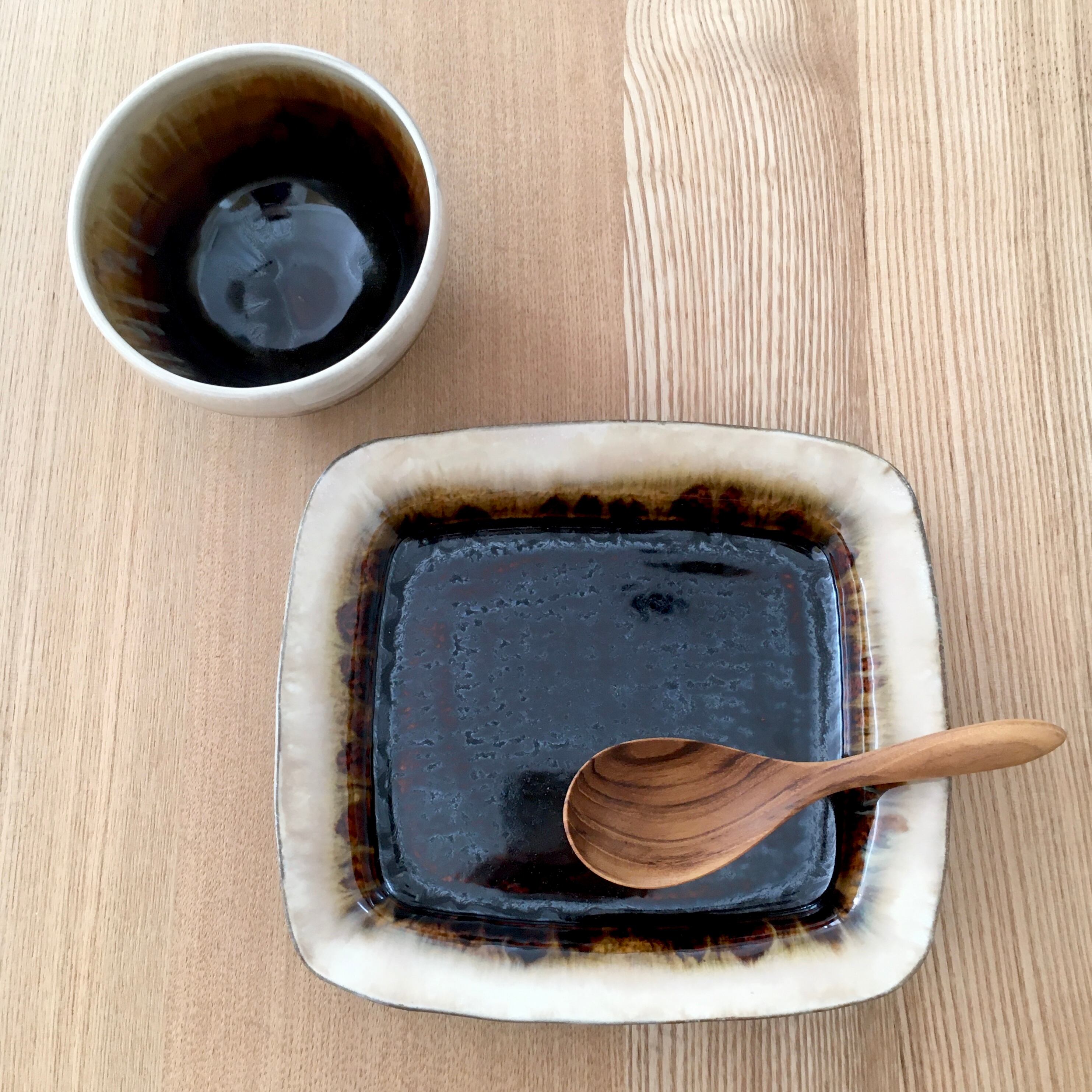 深い飴色にカフェオレのスチームミルクやお抹茶のグリーンが良く似合います。これからの季節には具沢山スープや炊き込みご飯などにもどうぞ…