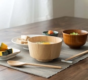 天然木の素朴な風合いを生かしたすっきりとしたシルエットで日々の暮らしにすんなり馴染むお椀。天然素材食器でありながら食洗器にも対応。毎日の食器として、丼や具だくさんのお汁ものにぴったりなサイズです。