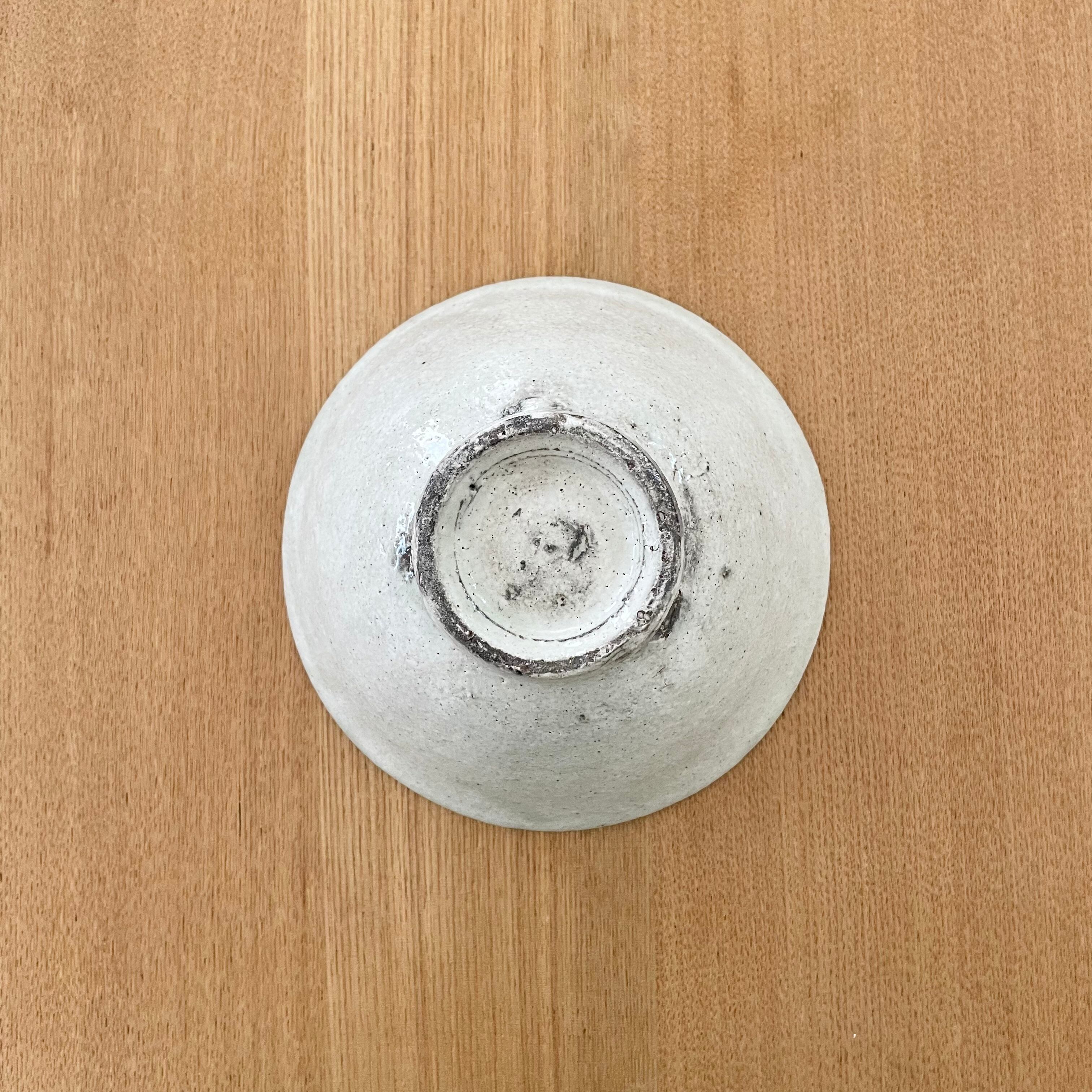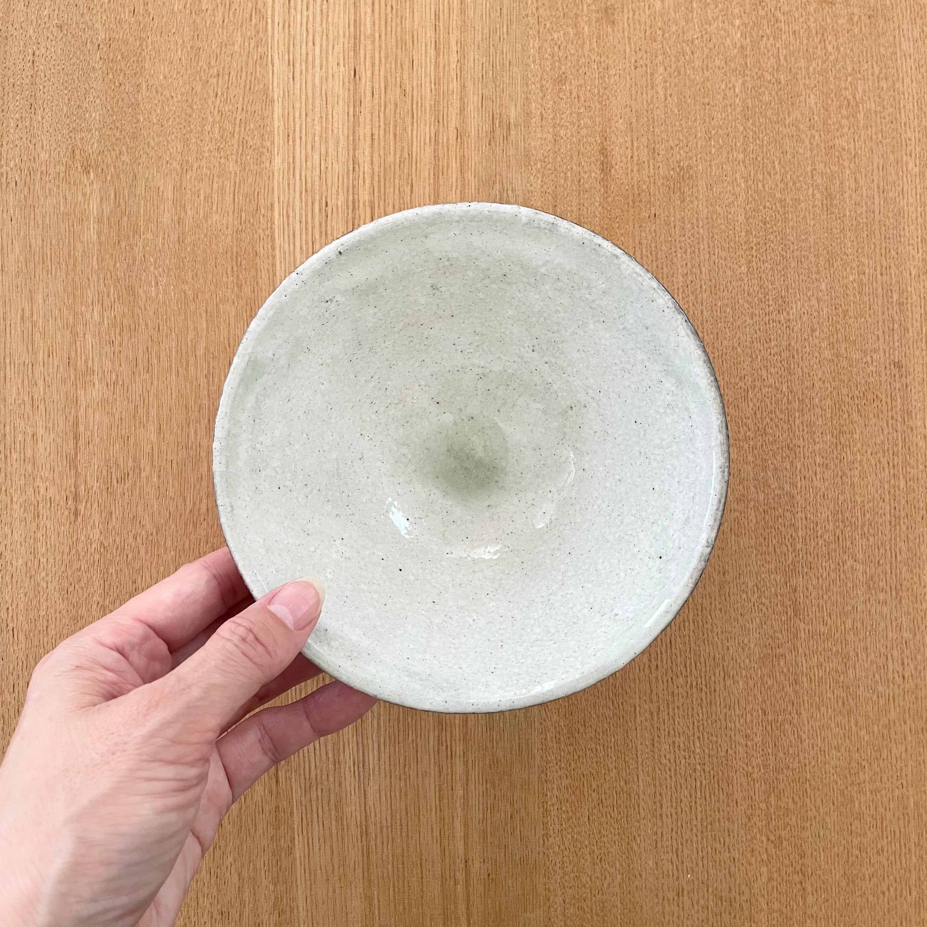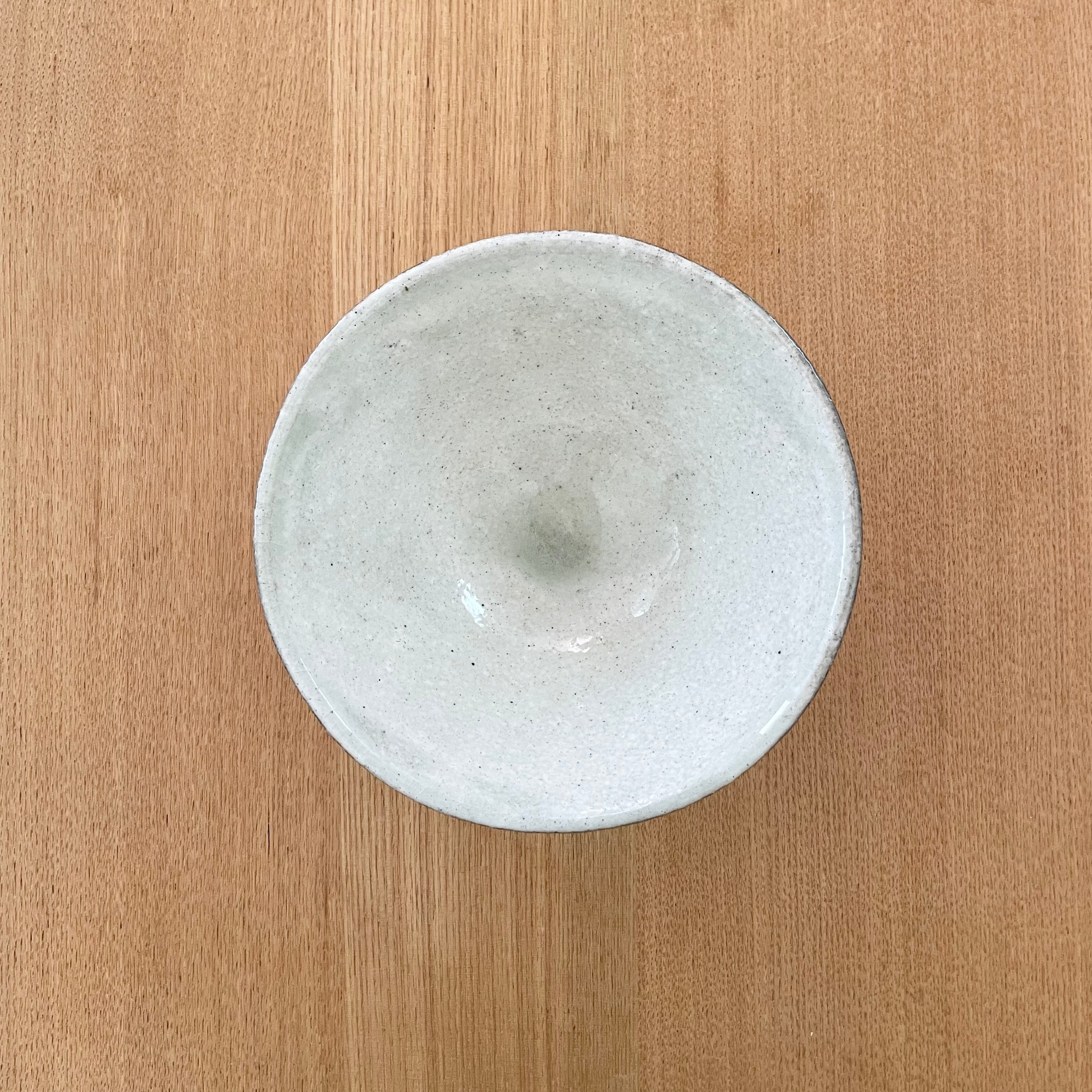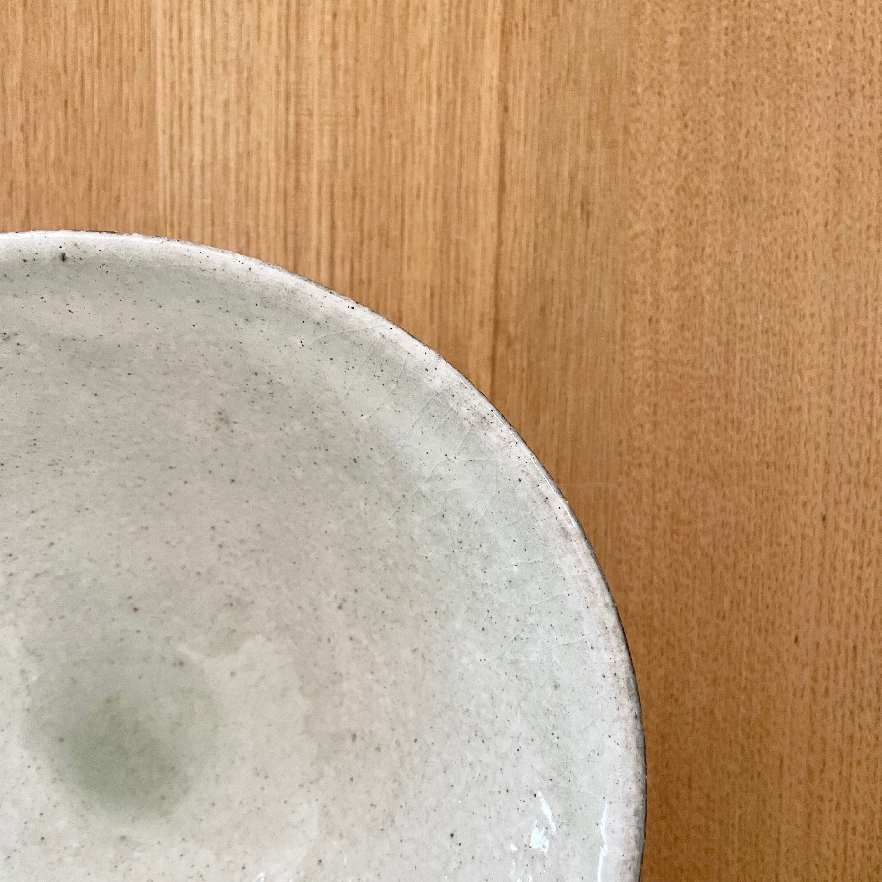 薄緑の釉だまりがとても綺麗な粉引きの大き目茶碗。清涼感もあるので冷や汁がとっても似合いそうです。
