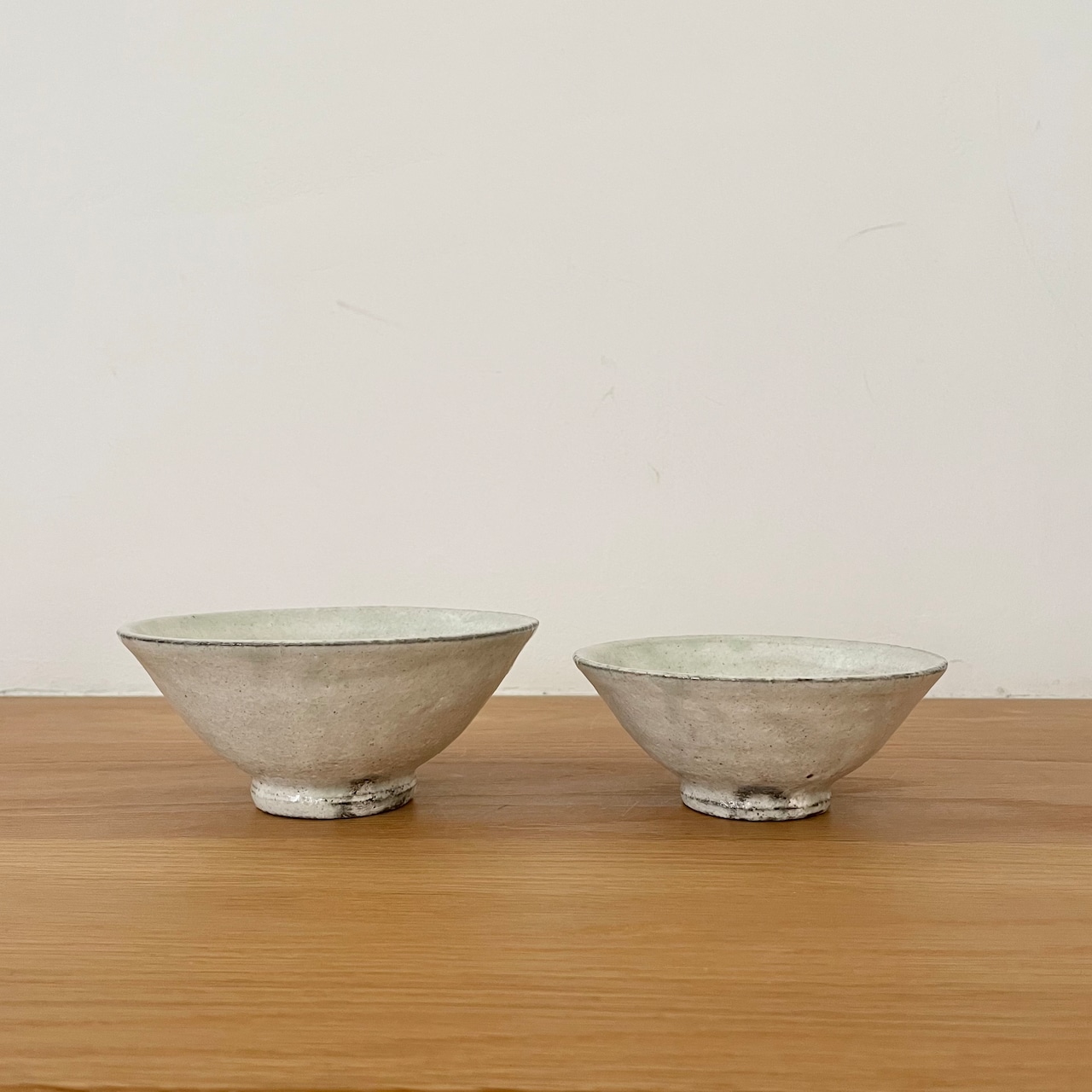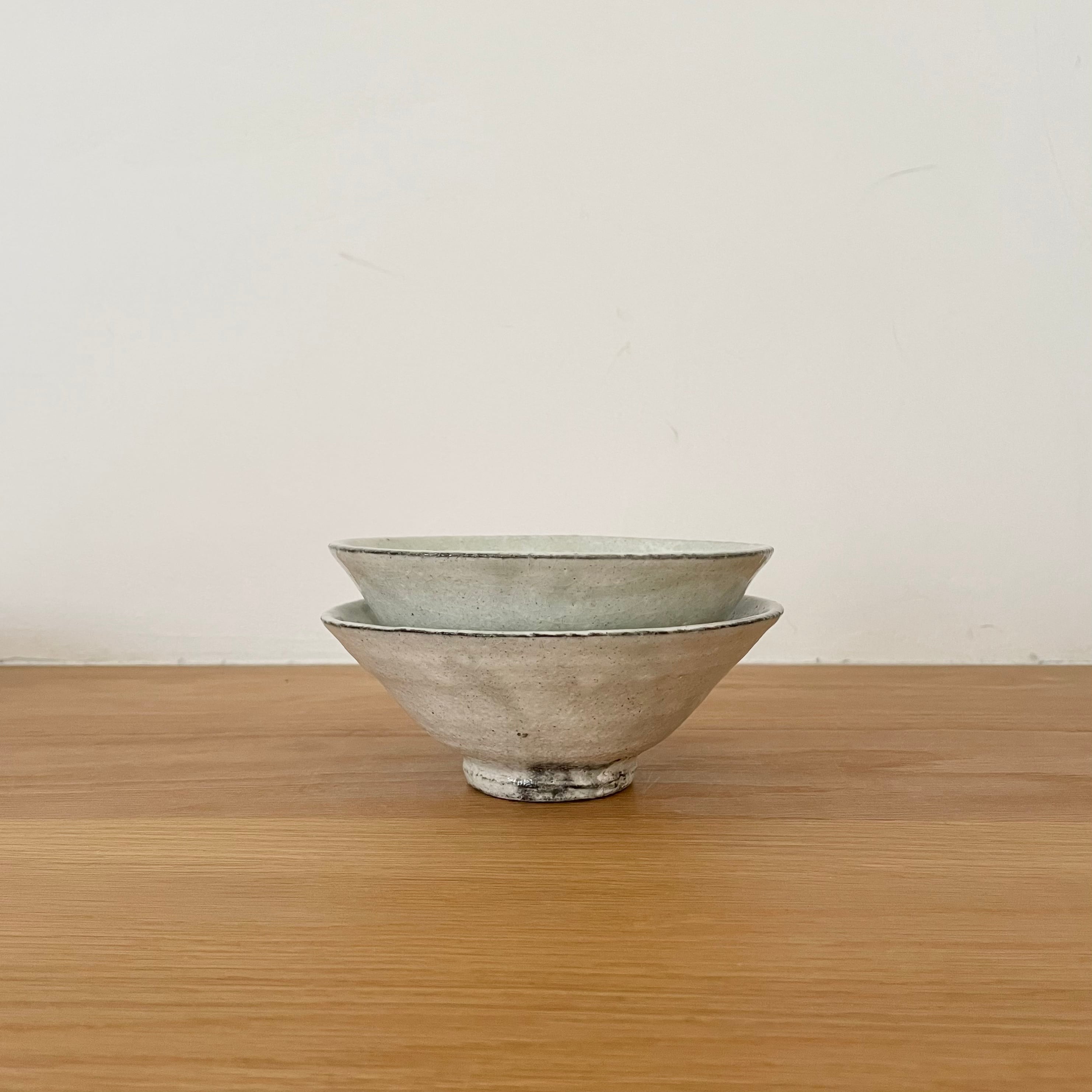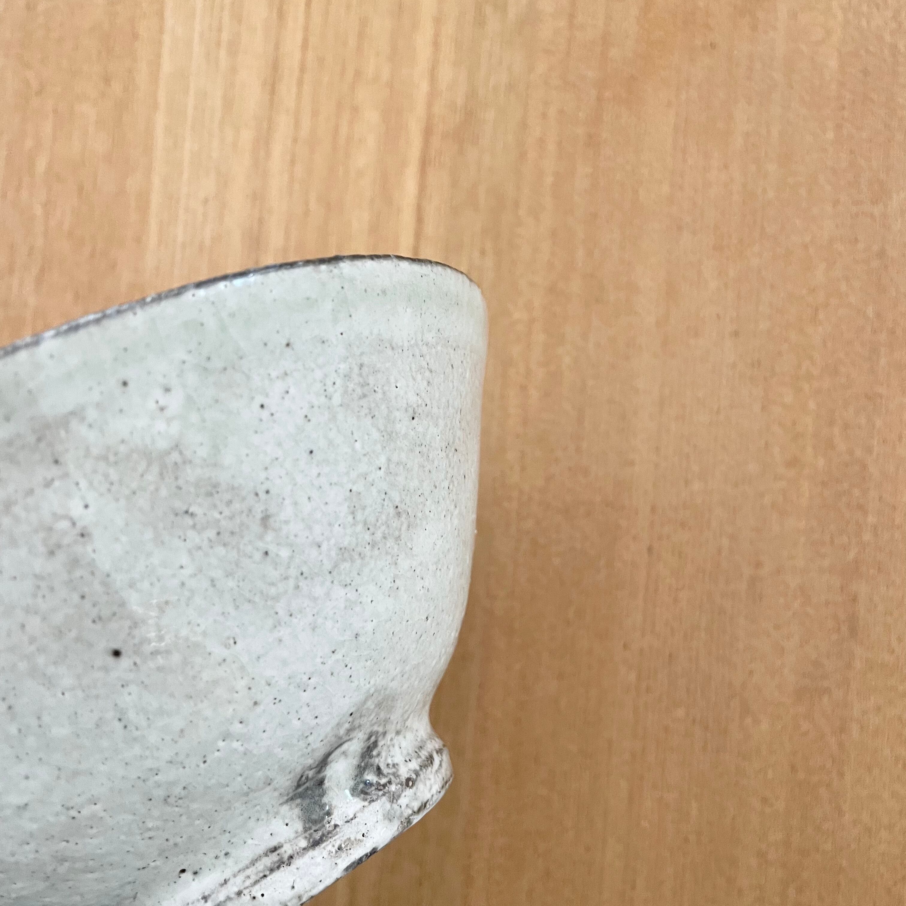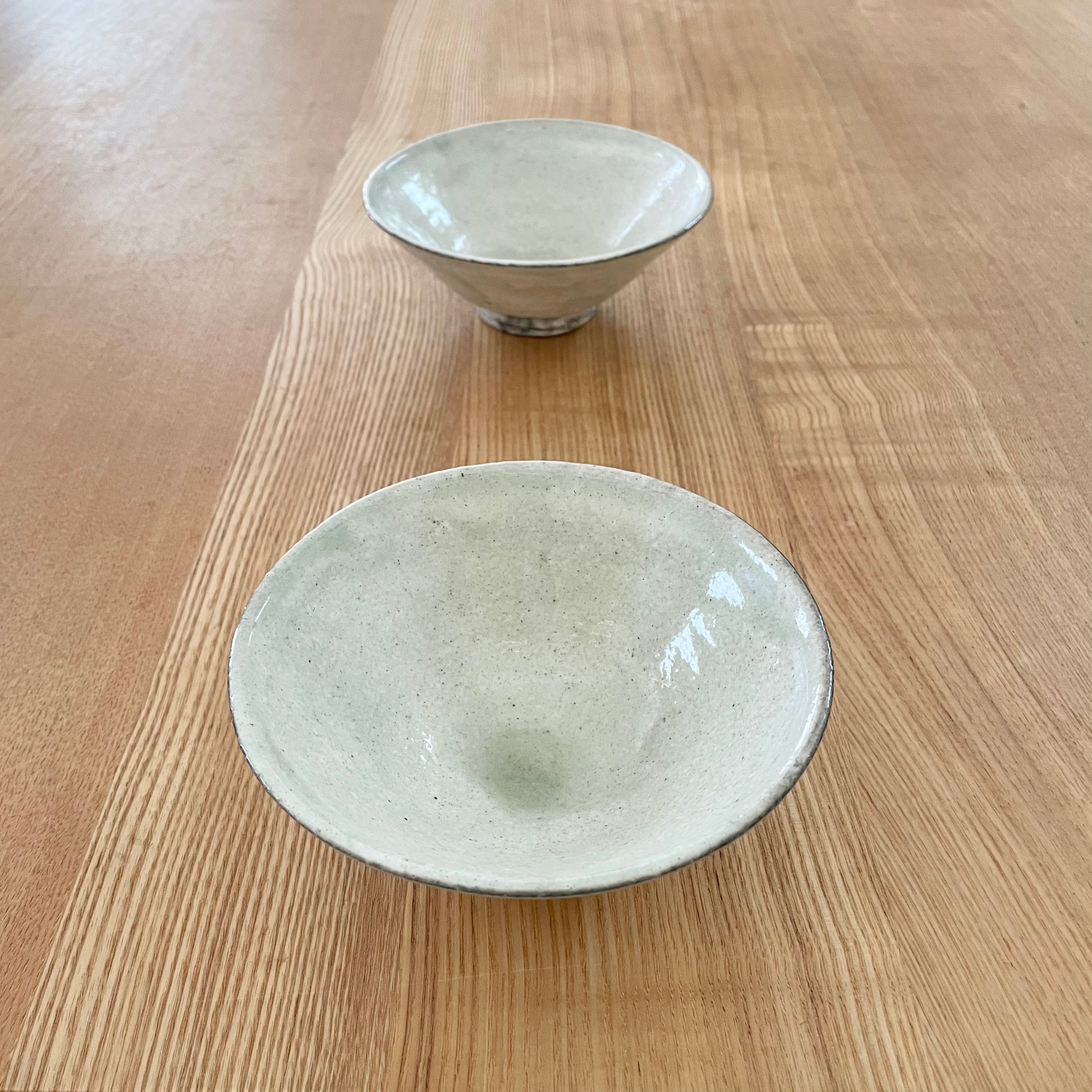 薄緑の釉だまりがとても綺麗な粉引きの大き目茶碗。清涼感もあるので冷や汁がとっても似合いそうです。