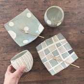 ▪️吸水性がある為、油物などを盛り付ける際には、一度水にくぐらせてから使用するとシミ等がつきにくくなります。