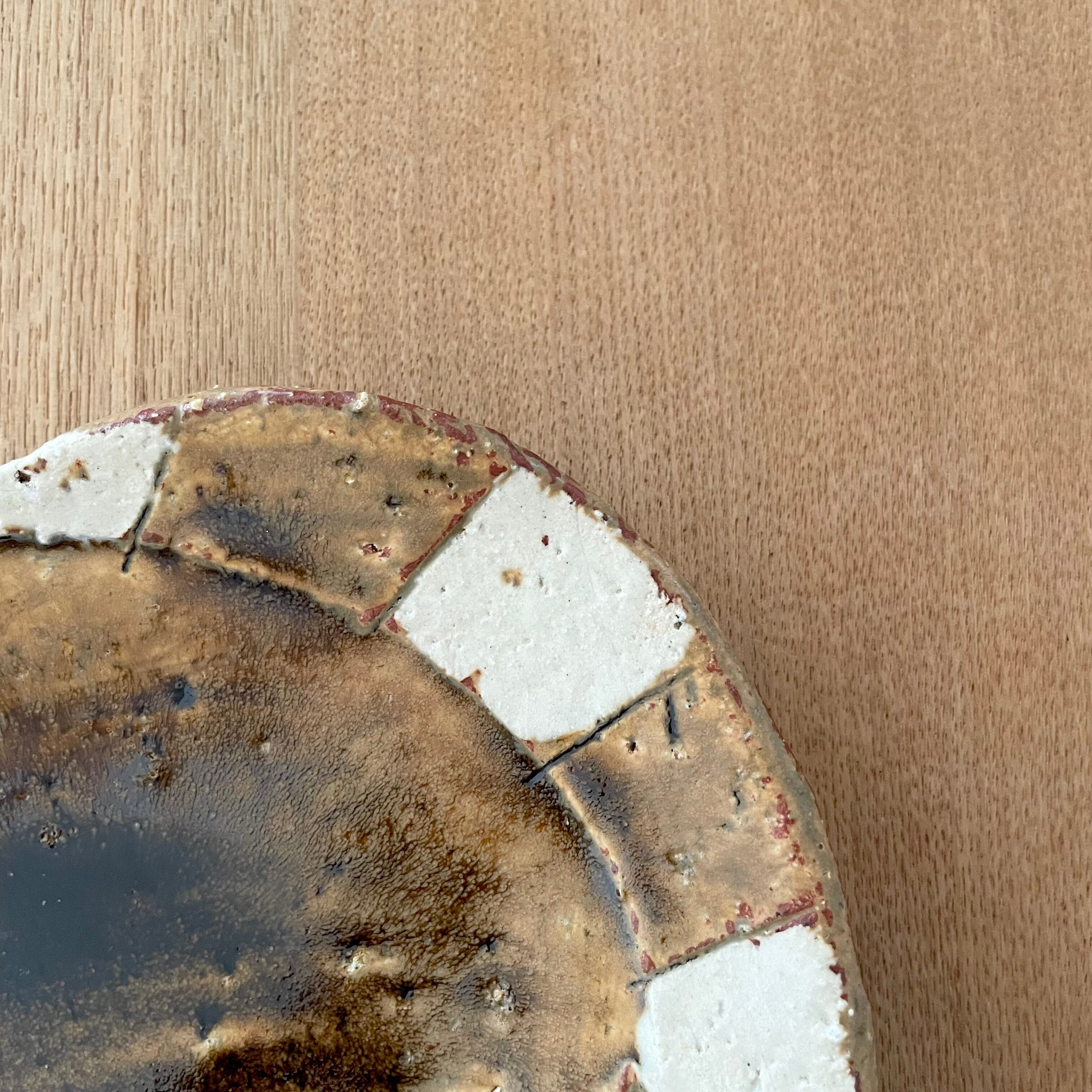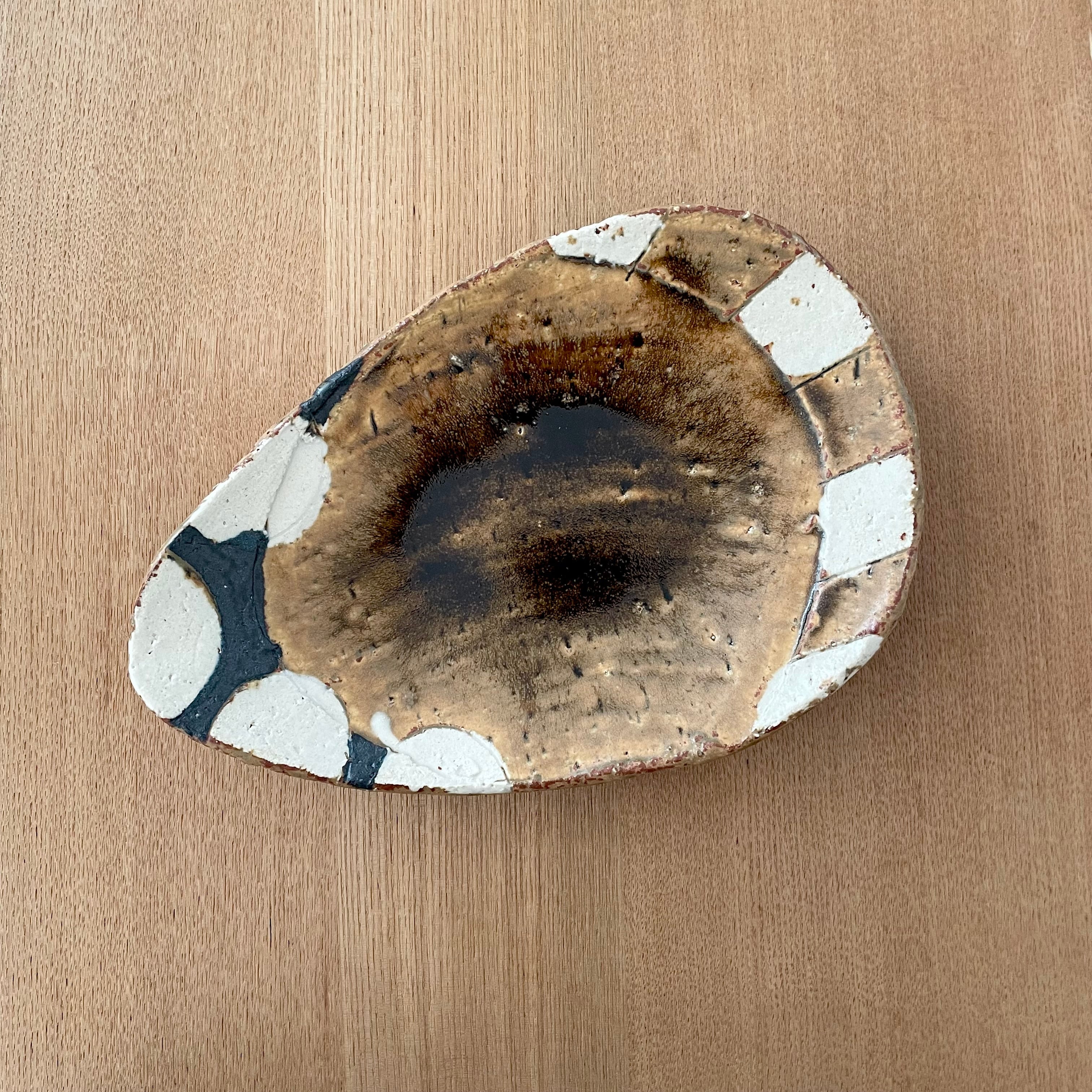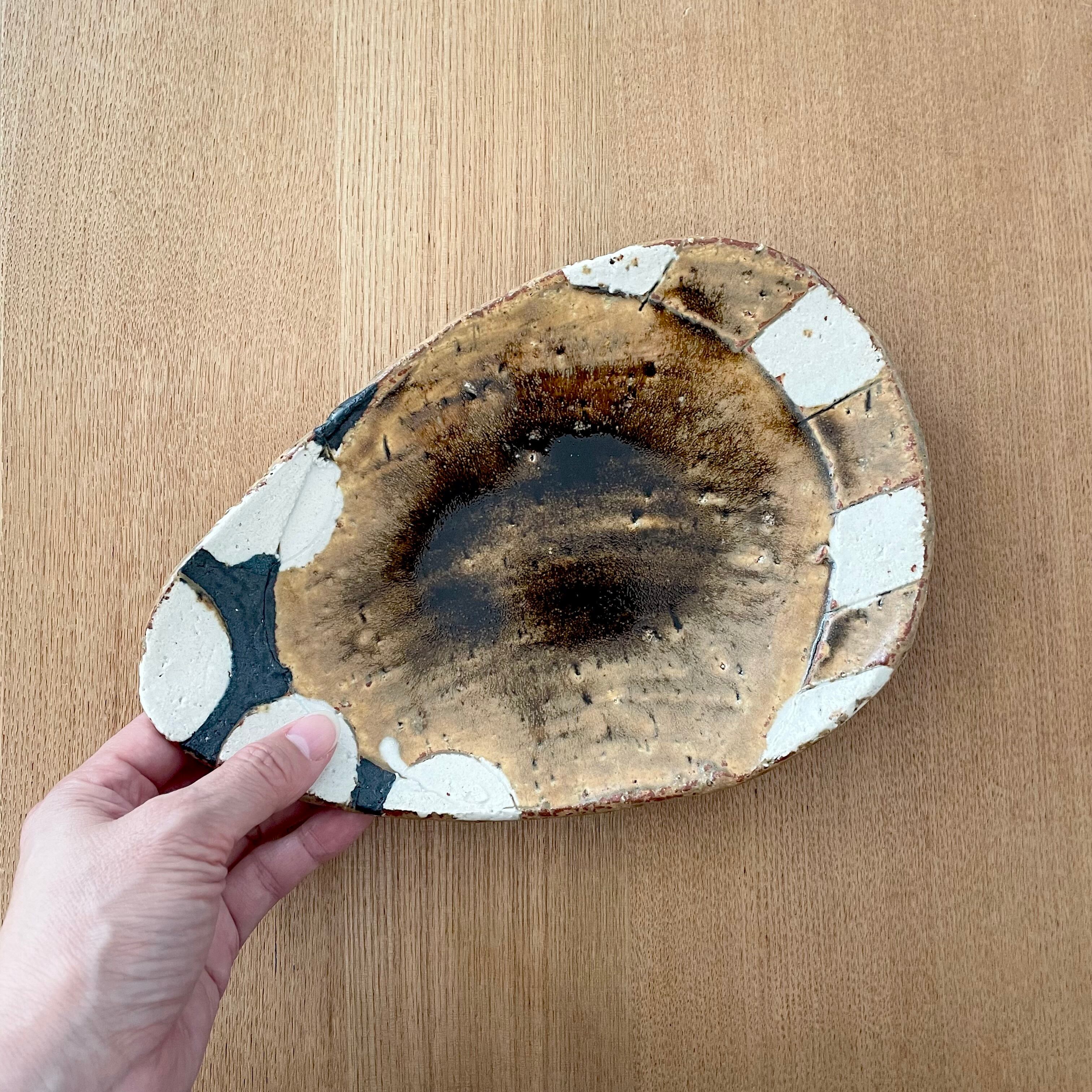 飴釉丸紋ストライプたまご皿小(山本一仁)