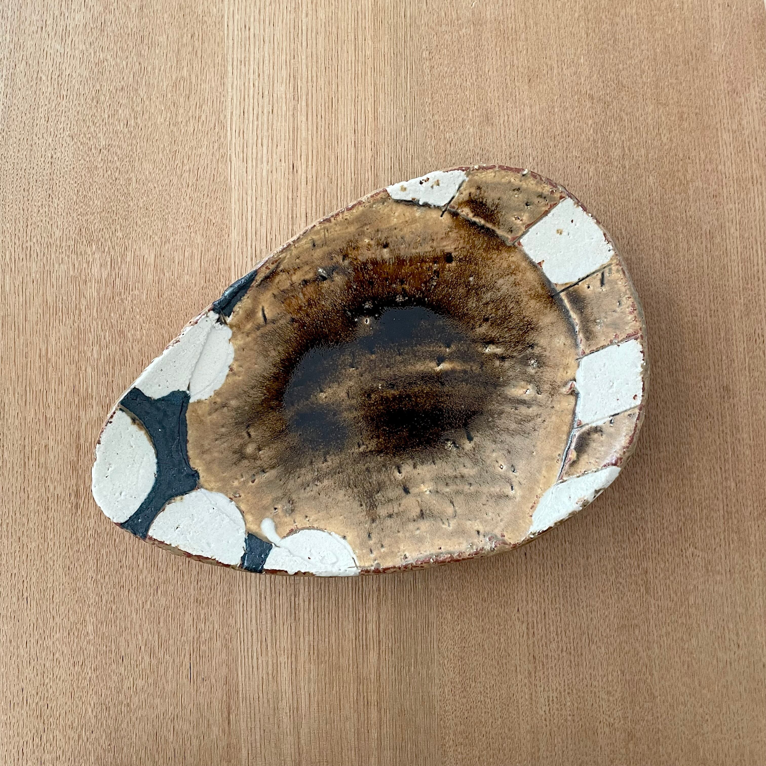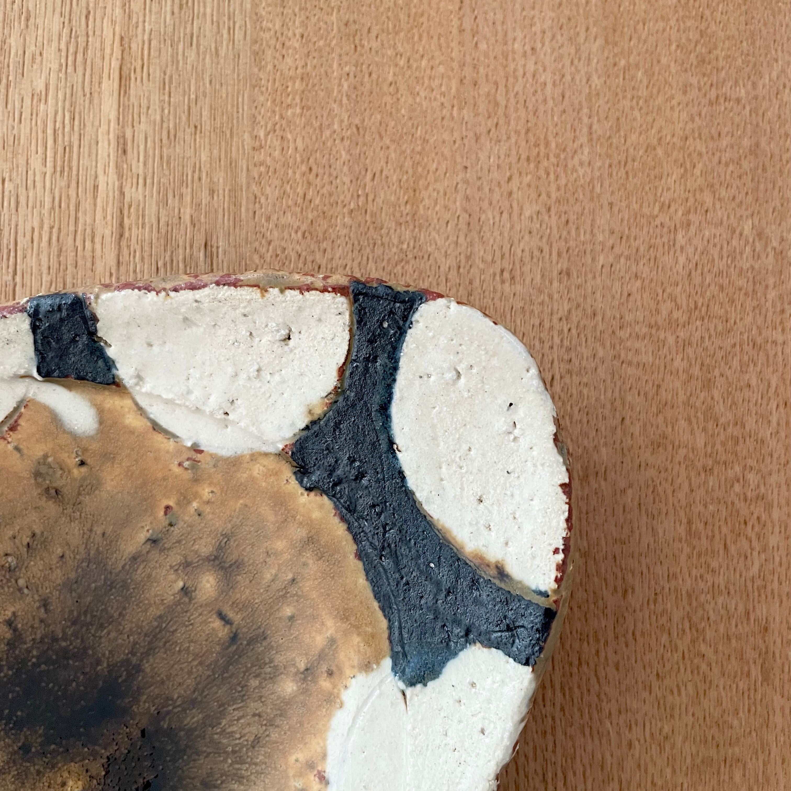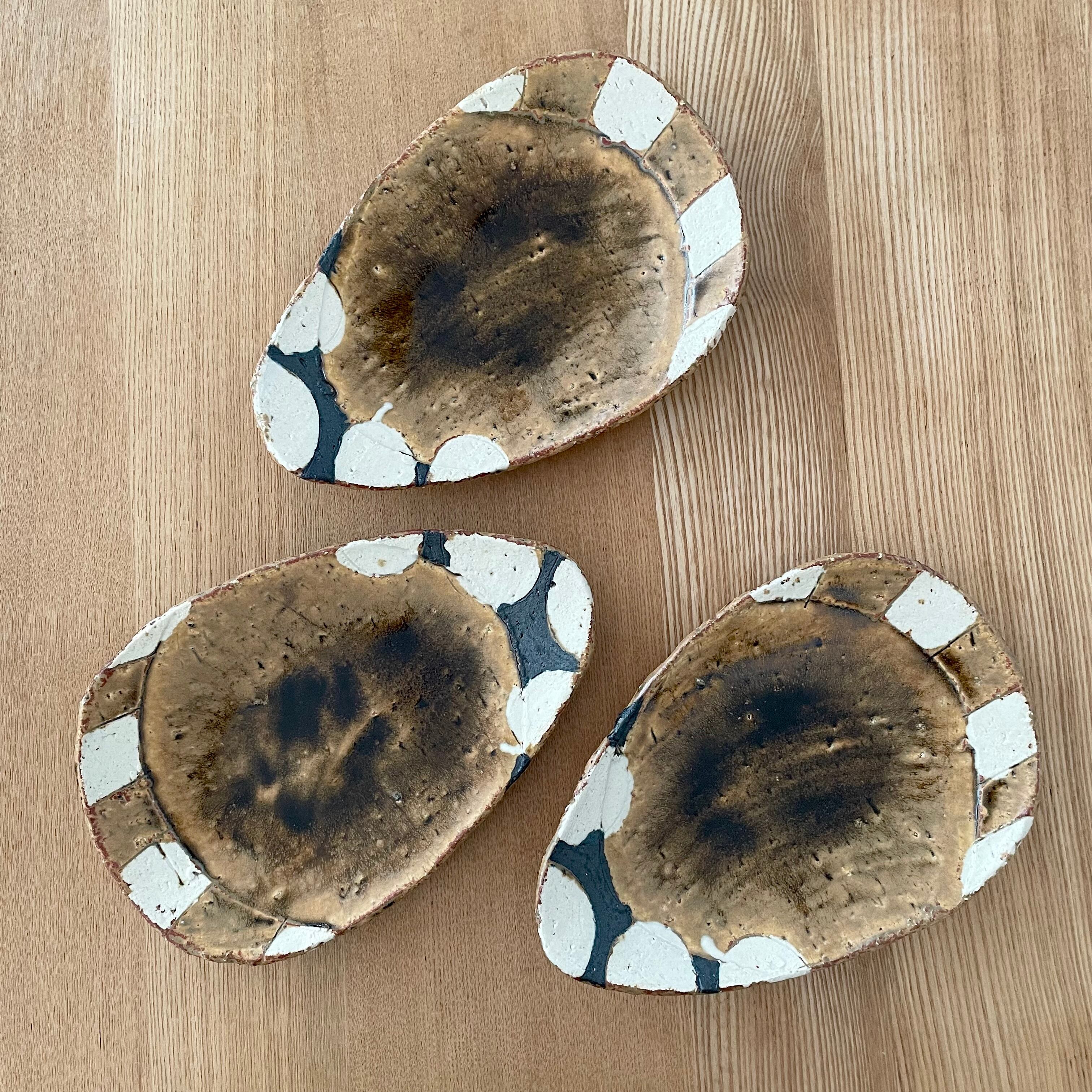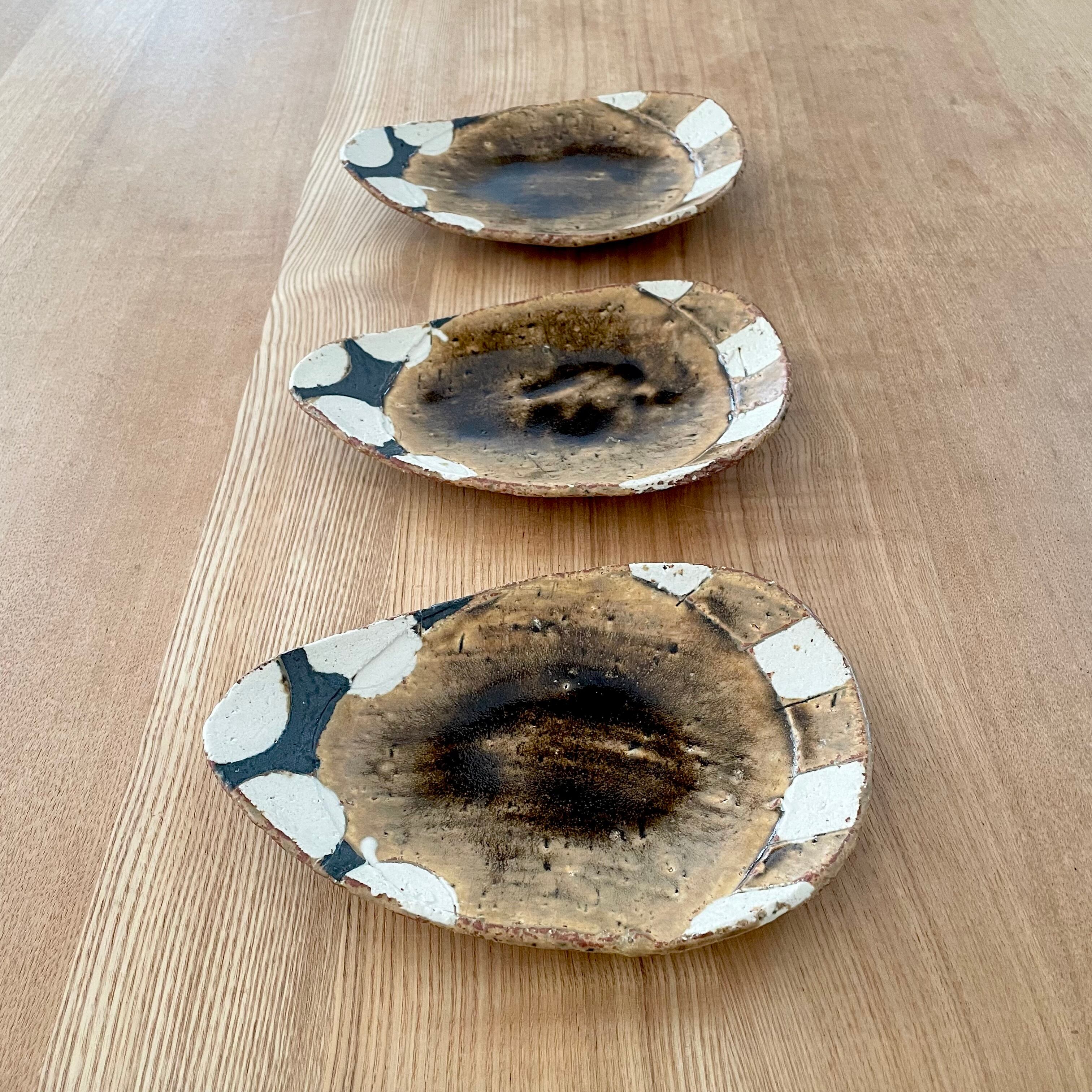 飴釉丸紋ストライプたまご皿小(山本一仁)